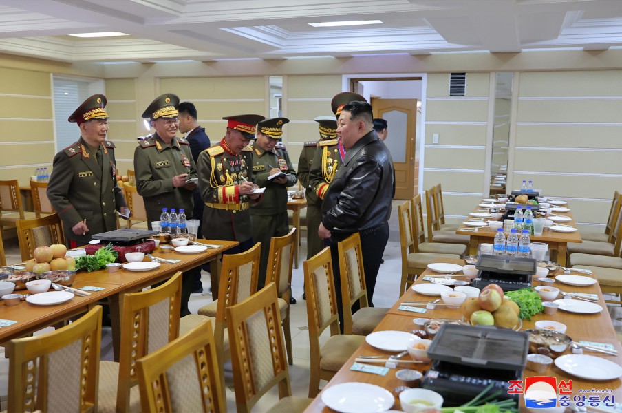 金正恩同志去食堂具體了解后勤供應情況后,用親自帶來(lái)的各種飲食,給教職員和學(xué)生提供晚餐。