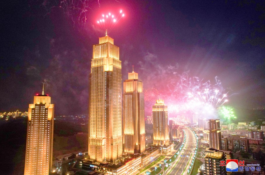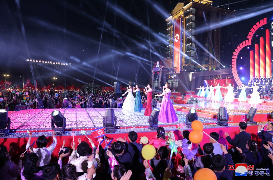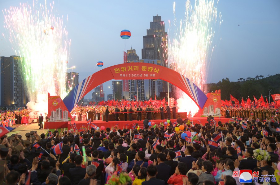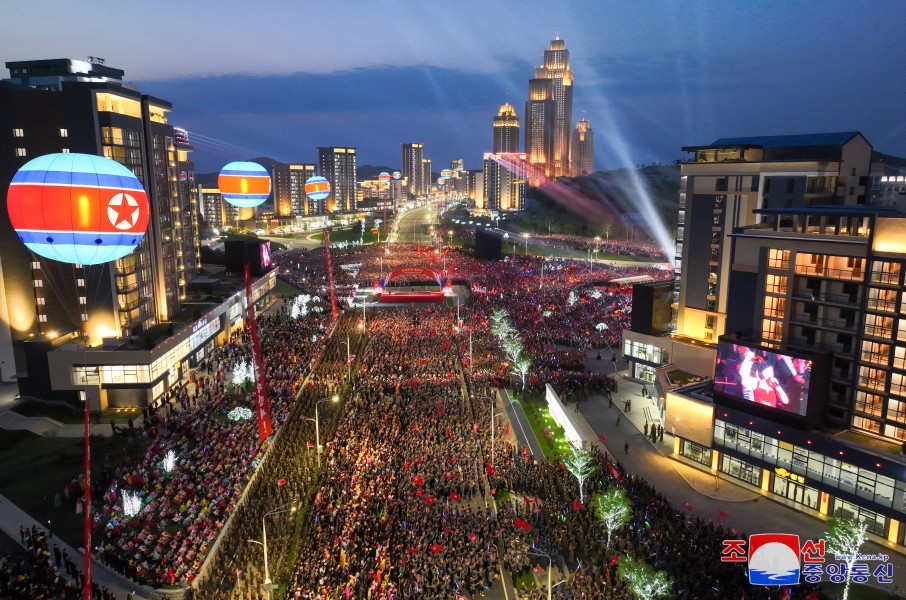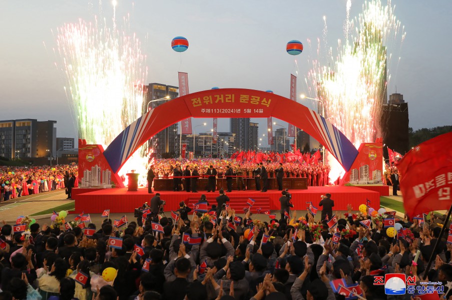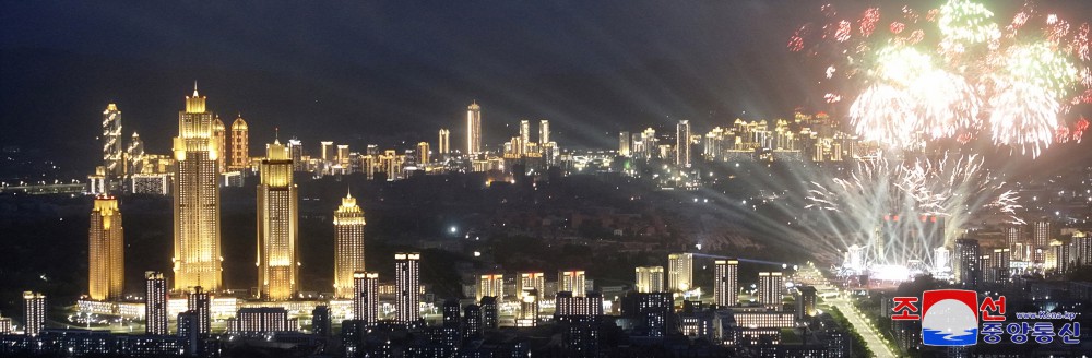 竣工典禮現場(chǎng)洋溢著(zhù)全體人民竭誠擁戴偉大的領(lǐng)導者、親愛(ài)的慈父,走向更加燦爛的未來(lái)的莫大驕傲與光榮。一朵朵耀眼的禮花在夜空中綻放,將前衛大街的夜景裝點(diǎn)得絢麗多彩。