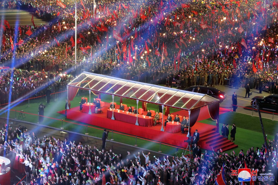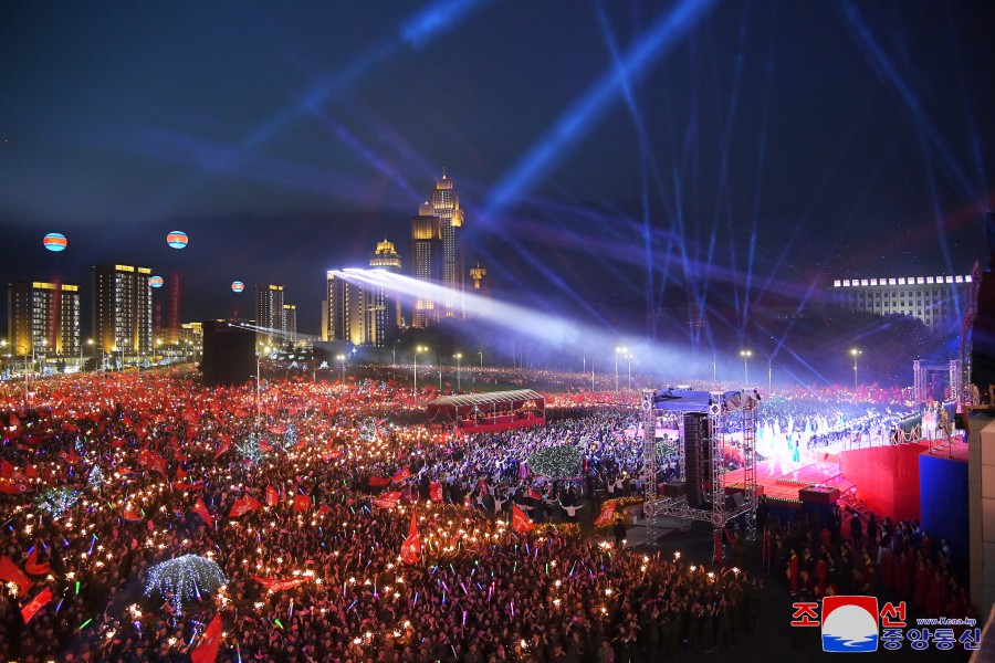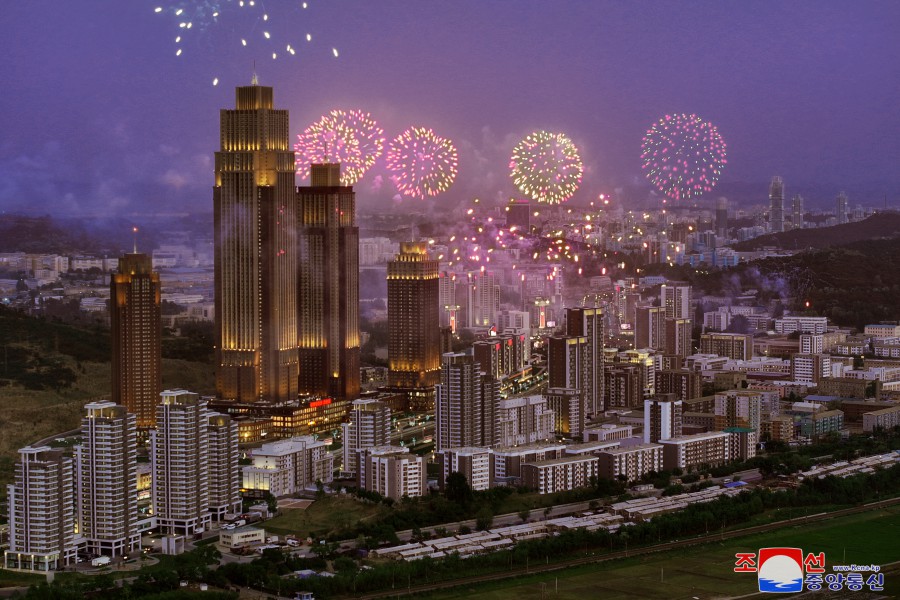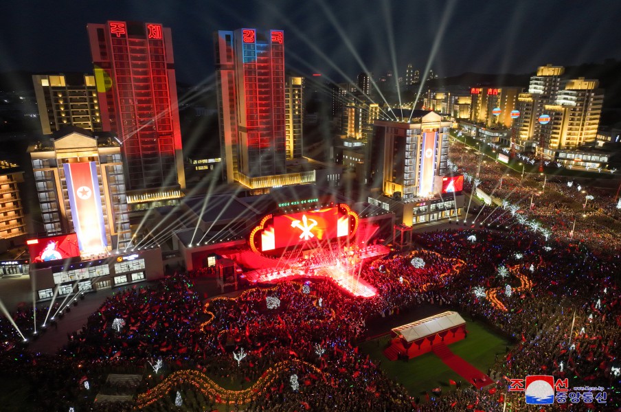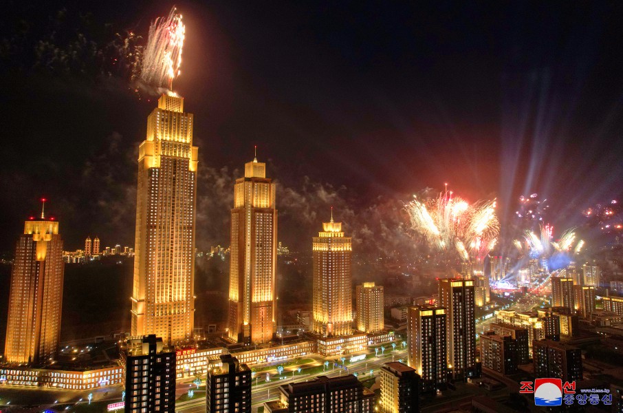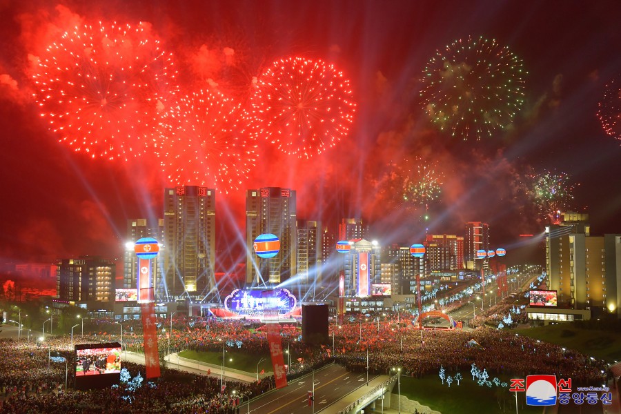 竣工典禮現場(chǎng)洋溢著(zhù)全體人民竭誠擁戴偉大的領(lǐng)導者、親愛(ài)的慈父,走向更加燦爛的未來(lái)的莫大驕傲與光榮。一朵朵耀眼的禮花在夜空中綻放,將前衛大街的夜景裝點(diǎn)得絢麗多彩。