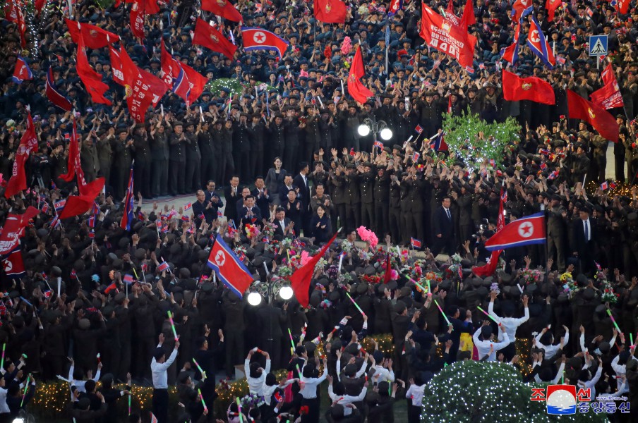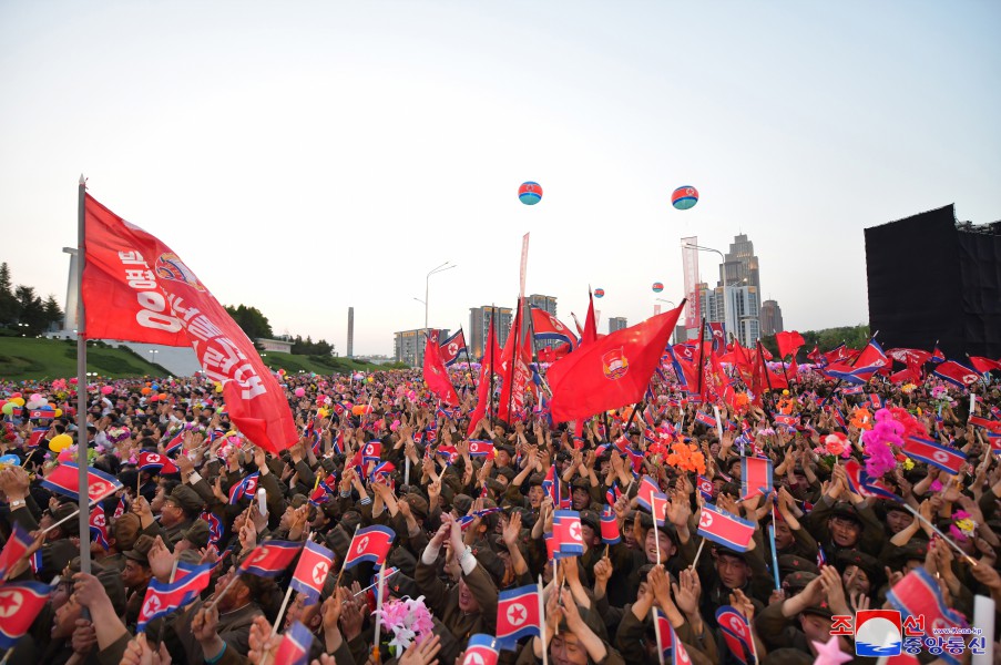 朝鮮民主主義人民共和國國歌莊重奏響。