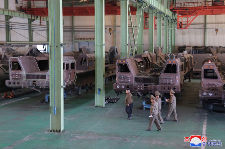 金正恩同志了解該企業(yè)全新升級的戰斗技術(shù)器材部分技術(shù)。金正恩同志說(shuō),對驚人的發(fā)展進(jìn)步感到高興,這對整個(gè)國防工業(yè)領(lǐng)域是一個(gè)鼓舞人心的成就。