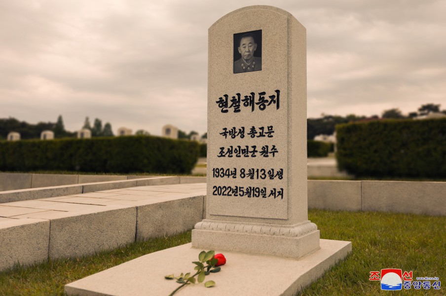 金正恩同志緬懷具有真正的共產(chǎn)主義人生觀(guān),一生始終不渝地無(wú)限忠于黨和祖國的革命戰士的生涯,向玄哲海同志之墓敬獻了鮮花。