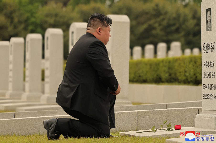 金正恩同志站在愛(ài)國烈士陵園的追慕碑前祈愿載入祖國史冊的烈士們的寶貴人生像我們國旗的閃閃的紅星一樣永遠放射出最燦爛的光芒,并致以崇高的敬意。(完)