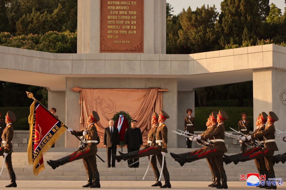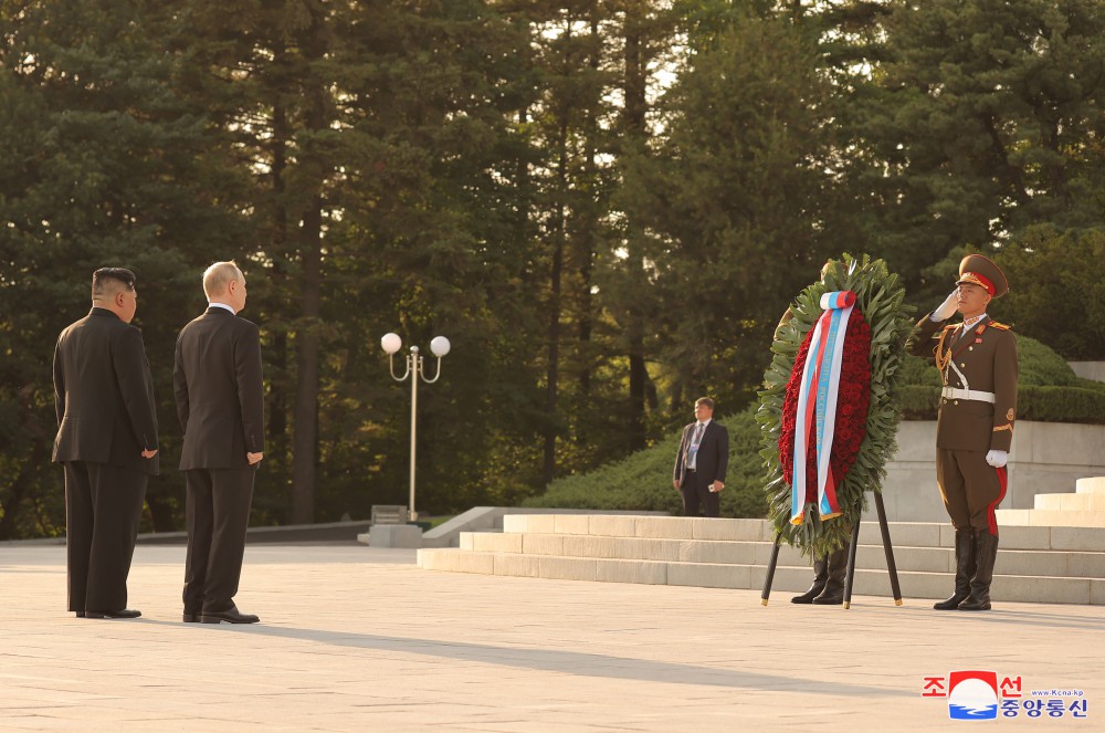 俄羅斯聯(lián)邦國歌和朝鮮民主主義人民共和國國歌莊重奏響。