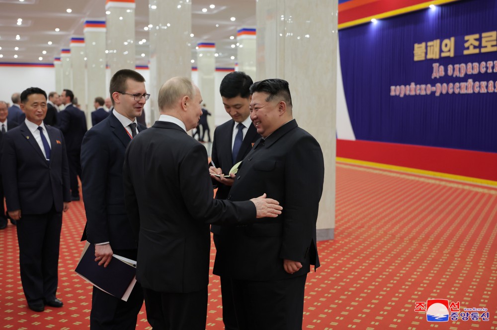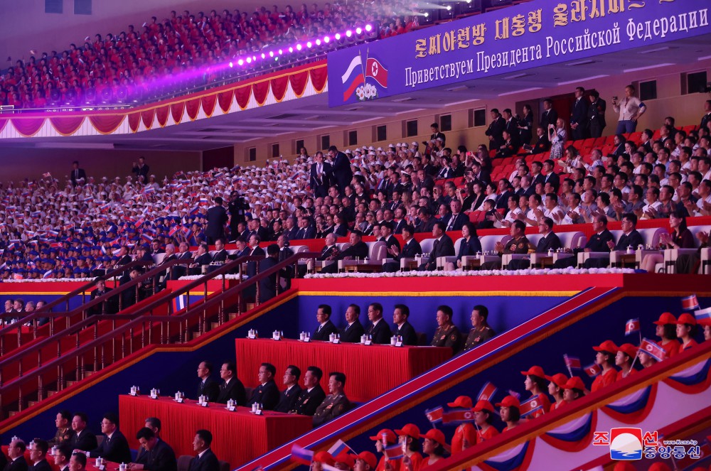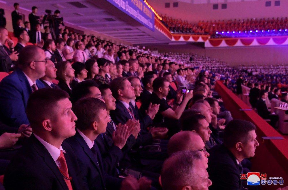 俄羅斯外交部長(cháng)謝爾蓋·拉夫羅夫、政府第一副總理丹尼斯·曼圖羅夫、政府副總理亞歷山大·諾瓦克、總統辦公廳副主任兼新聞秘書(shū)德米特里·佩斯科夫、負責對外政策總統助理尤里·烏沙科夫、國防部長(cháng)安德烈·別洛烏索夫、自然資源與生態(tài)部長(cháng)兼俄朝政府間貿易經(jīng)濟和科技合作委員會(huì )俄方委員長(cháng)亞歷山大·科茲洛夫、衛生部長(cháng)米哈伊爾·穆拉什科、交通部長(cháng)羅曼·斯塔羅沃伊特和其他隨行人員、俄羅斯駐朝鮮特命全權大使亞歷山大·馬采戈拉以及大使館成員應邀出席。