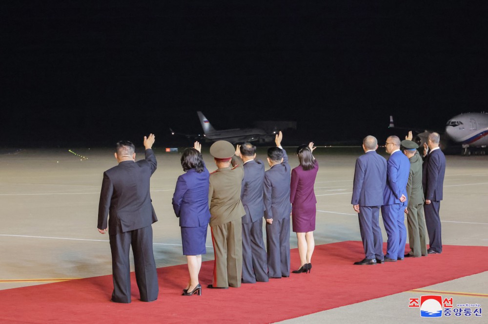 朝鮮民主主義人民共和國外務(wù)相崔善姬,朝鮮勞動(dòng)黨中央軍事委員會(huì )副委員長(cháng)、黨中央委員會(huì )書(shū)記樸正天,朝鮮勞動(dòng)黨中央委員會(huì )書(shū)記趙甬元,朝鮮勞動(dòng)黨中央委員會(huì )國際部長(cháng)金成男,朝鮮勞動(dòng)黨中央委員會(huì )副部長(cháng)金與正,俄羅斯駐朝鮮特命全權大使亞歷山大?馬采戈拉和大使館成員到機場(chǎng)送行。