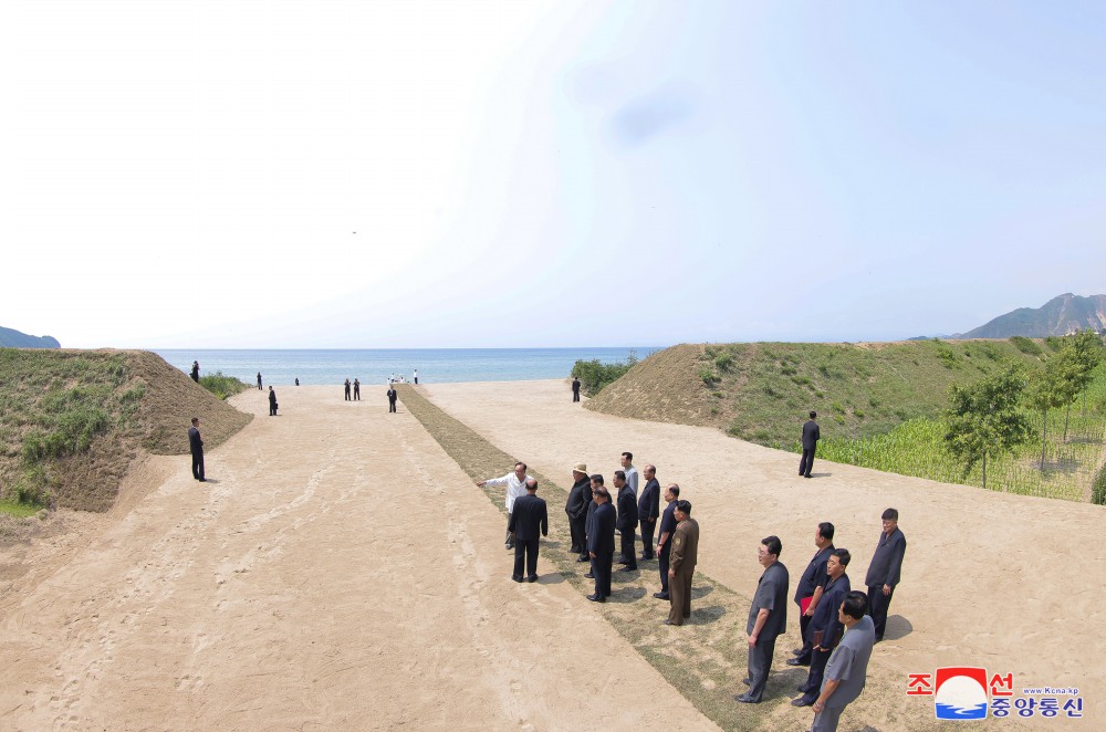 朝鮮勞動(dòng)黨總書(shū)記、朝鮮民主主義人民共和國國務(wù)委員長(cháng)金正恩同志7月15日與黨和政府的領(lǐng)導干部一起前往咸鏡南道新浦市豐漁洞地區巡視淺海養殖事業(yè)所建設用地,了解工作計劃,并在現場(chǎng)召開(kāi)了有關(guān)部門(mén)干部協(xié)議會(huì )。