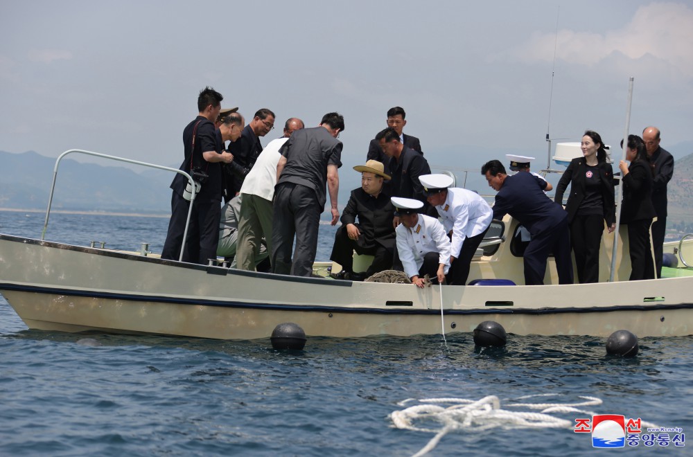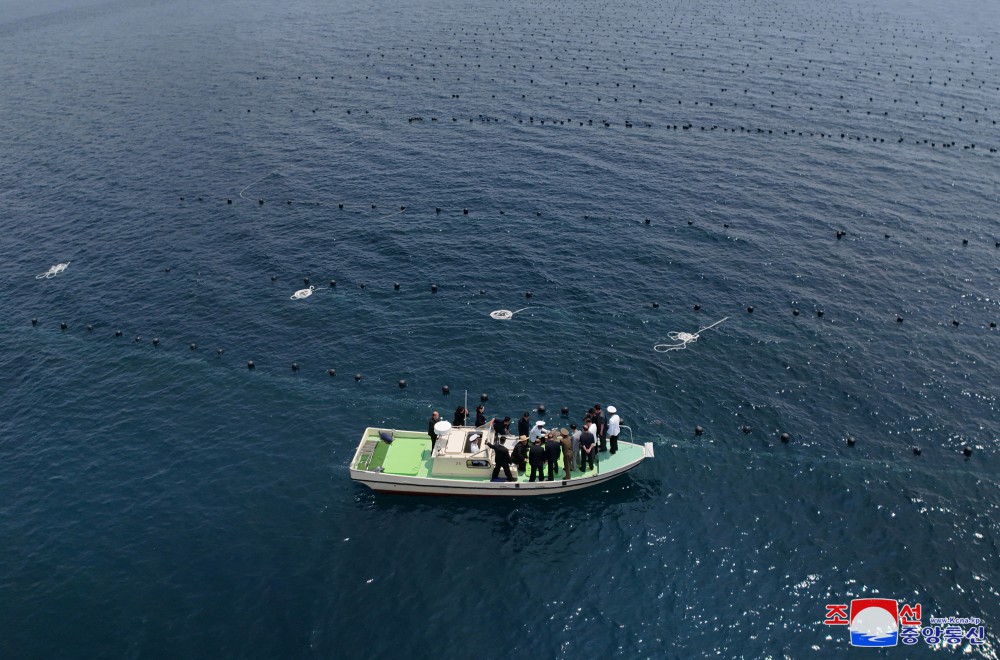 協(xié)議會(huì )結束后,金正恩同志巡視了淺海養殖場(chǎng)水域。