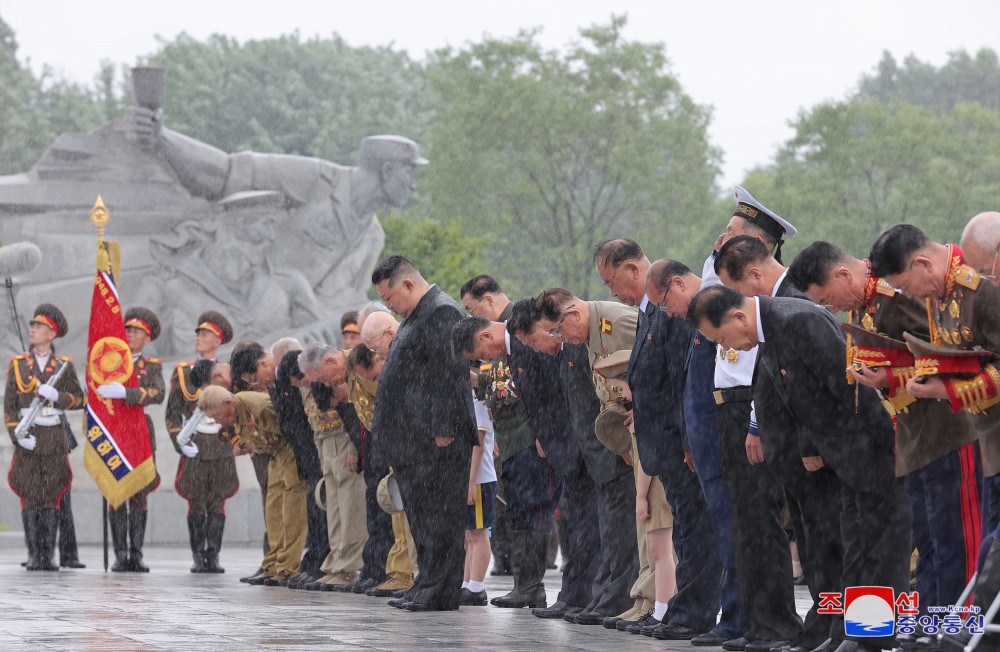 在祖國解放戰爭勝利71周年之際,朝鮮勞動(dòng)黨總書(shū)記、朝鮮民主主義人民共和國國務(wù)委員長(cháng)金正恩同志7月26日上午憑吊祖國解放戰爭烈士陵園。