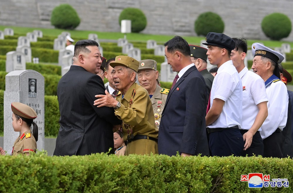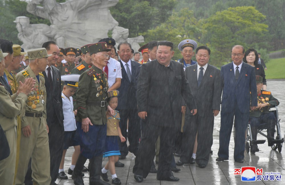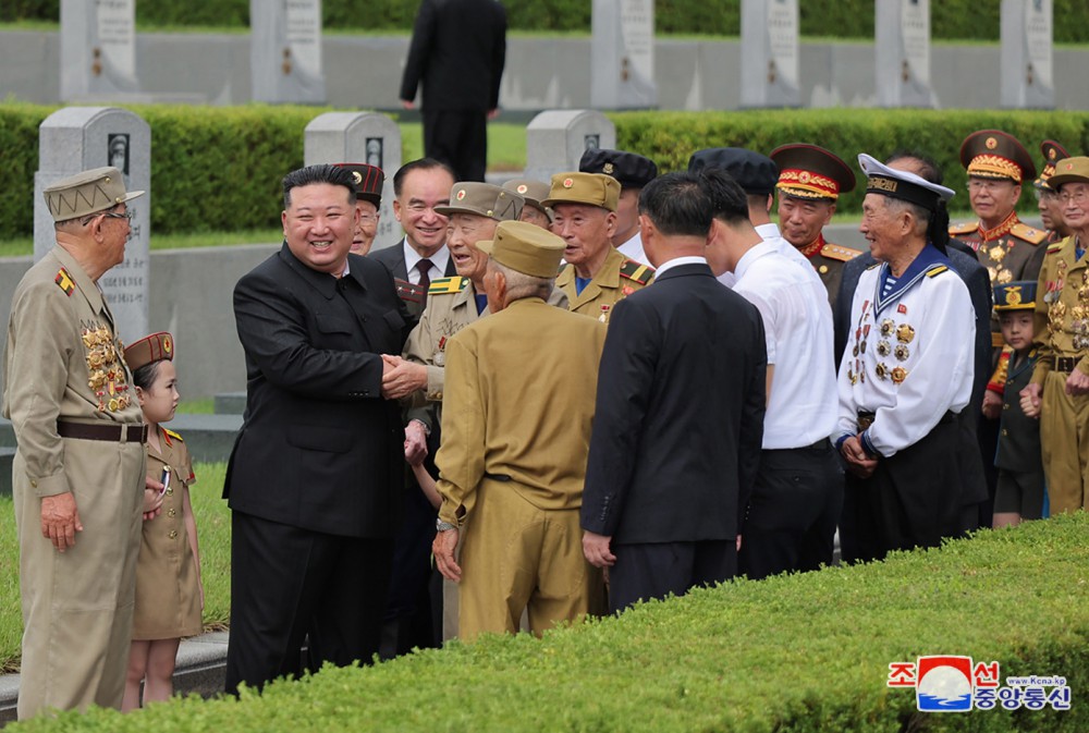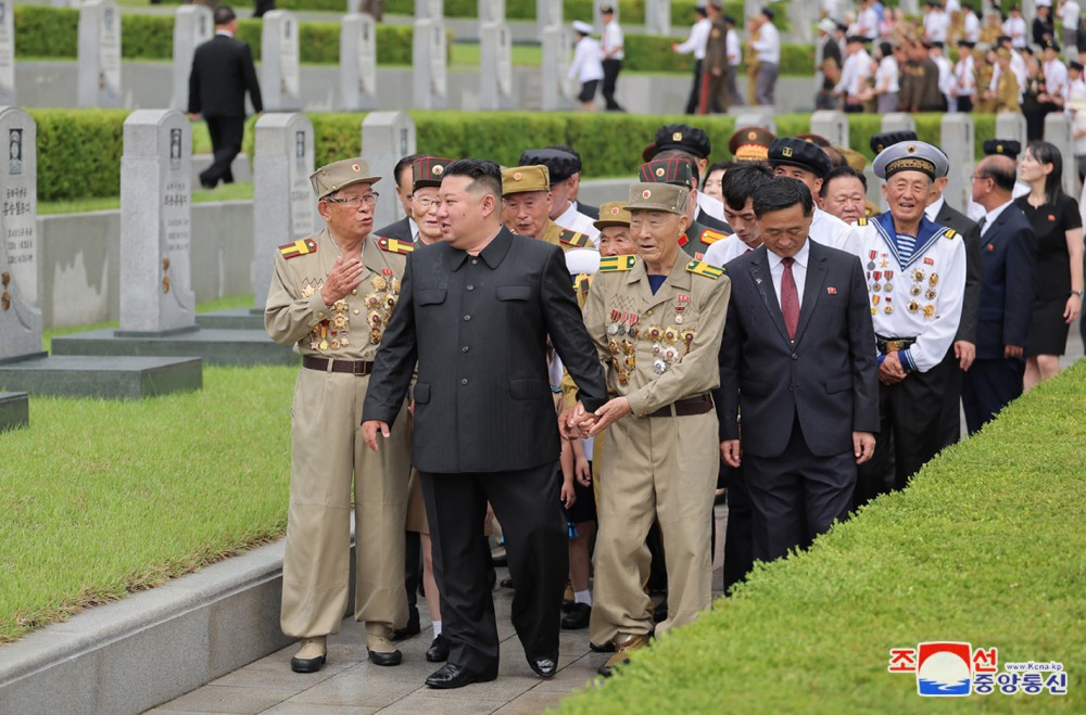 金正恩同志和參戰老兵一起參觀(guān)了烈士陵園。