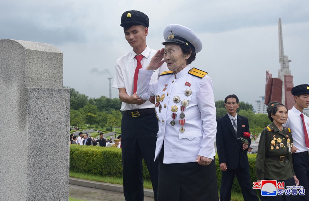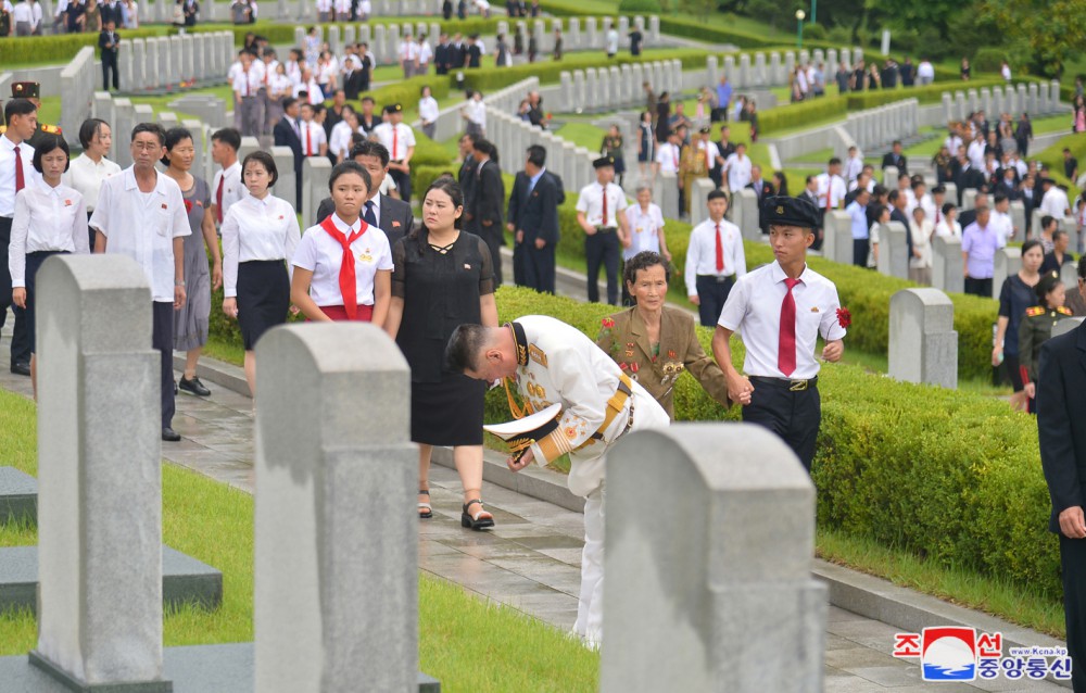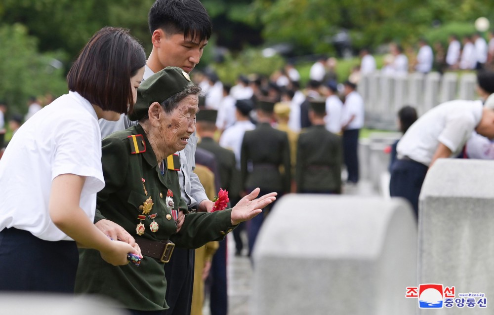 國家領(lǐng)導干部、人民軍指揮員、勞動(dòng)群眾、革命學(xué)院學(xué)員和青年學(xué)生都跟參戰老兵一起手捧著(zhù)鮮花到祖國解放戰爭烈士陵園,深切緬懷上世紀50年代祖國保衛者為英雄朝鮮、英雄人民贏(yíng)得不朽光榮與名譽(yù)的革命精神。