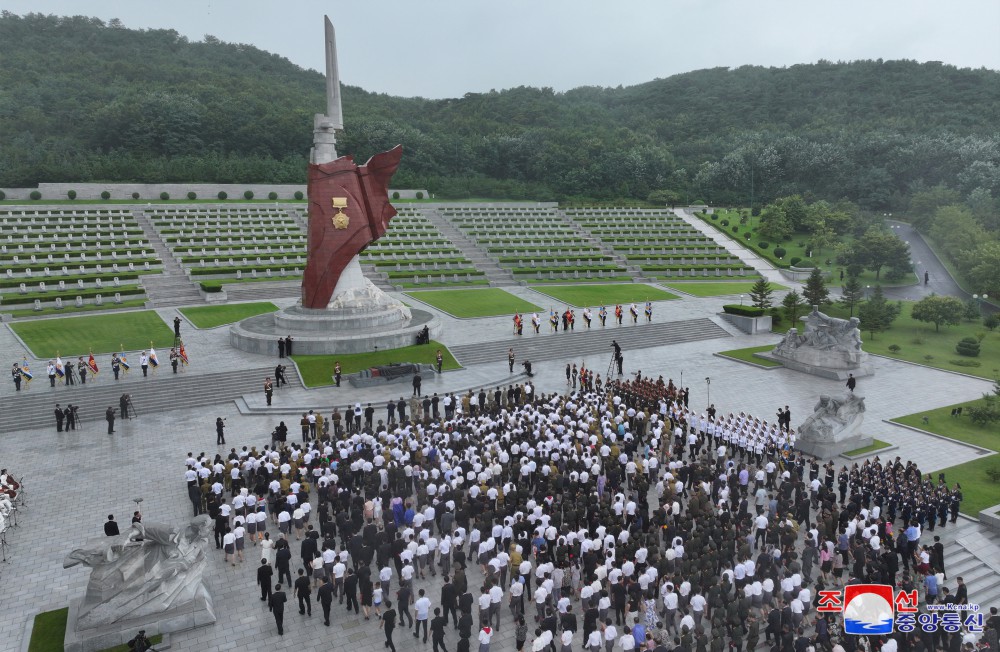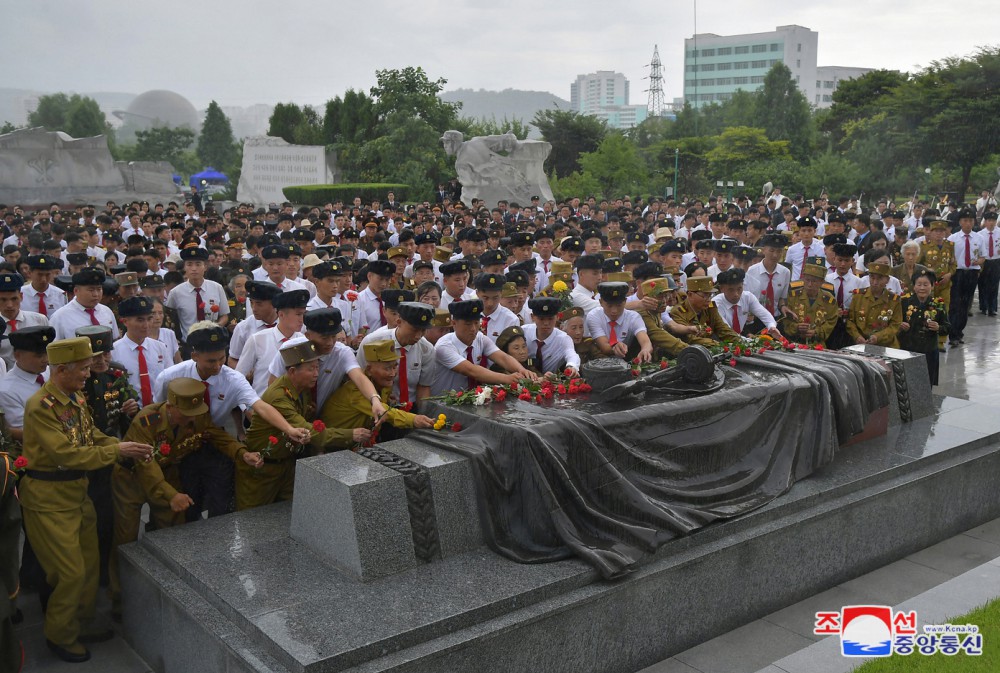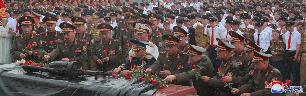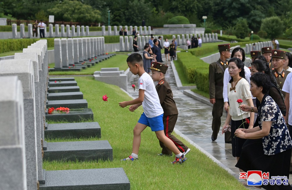 金正恩同志向祖國解放戰爭烈士陵園敬獻鮮花,向烈士們表示崇高敬意,深情緬懷戰勝年代人為了最偉大而神圣的祖國母親無(wú)私奉獻青春和生命的不朽英雄精神和高貴犧牲精神。
