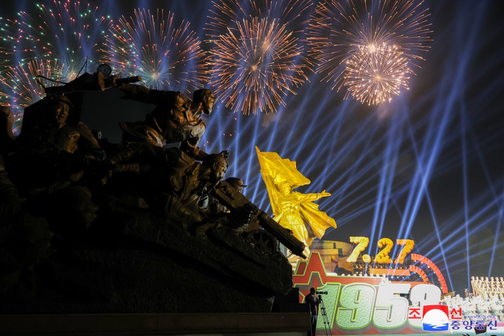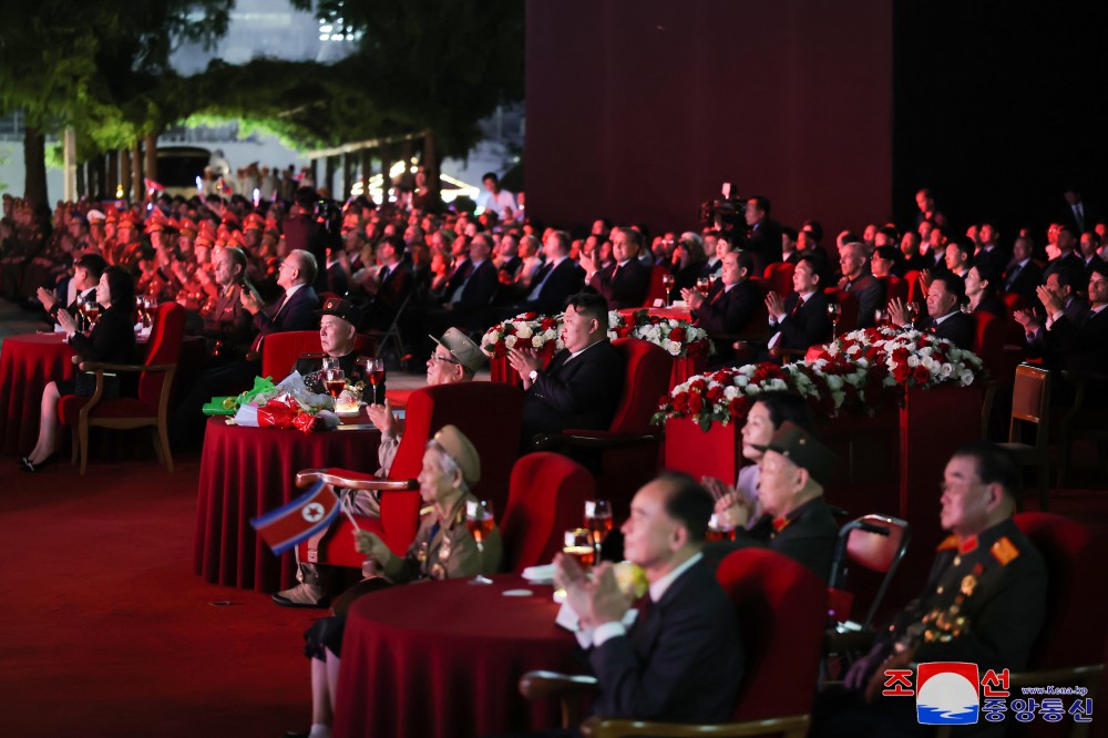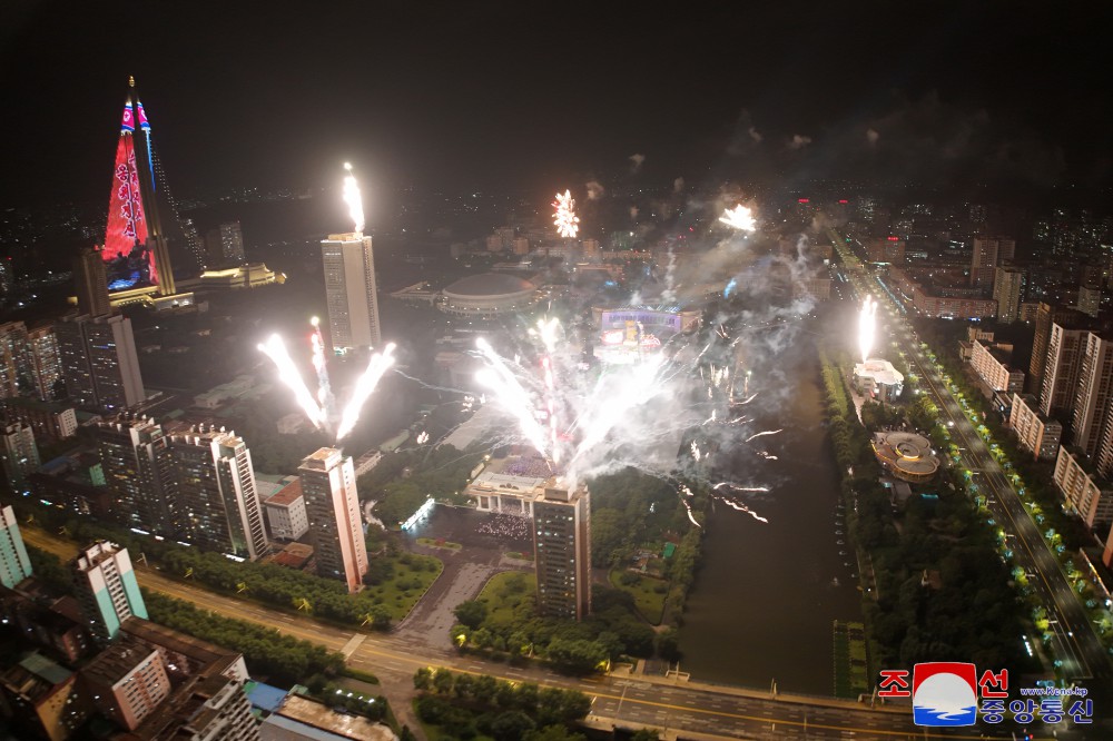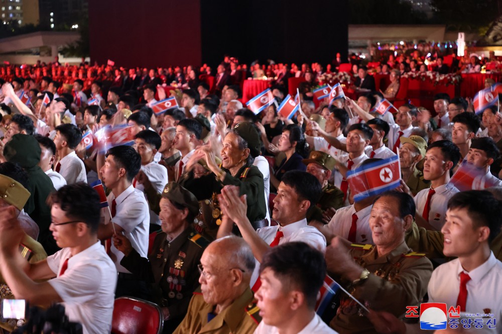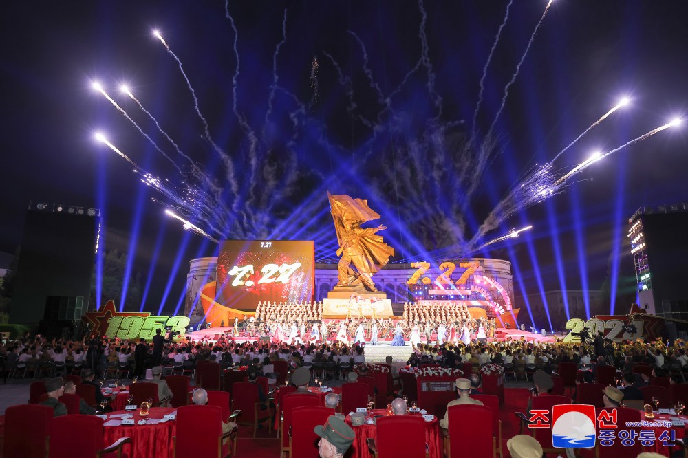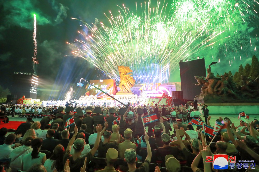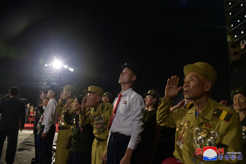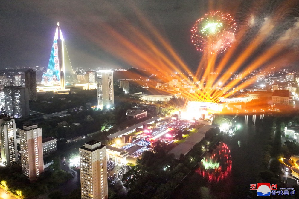 朝中社平壤7月28日電 一場(chǎng)盛大的慶祝演出7月27日晚在祖國解放戰爭勝利紀念塔前隆重舉行,為享有尊嚴的朝鮮民主主義人民共和國的不朽名譽(yù)和必勝象征——偉大的戰勝節增加喜慶氛圍。