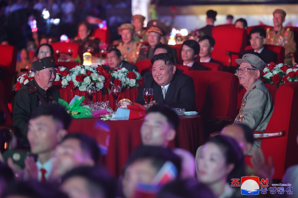 國防省指揮員、朝鮮人民軍大聯(lián)合部隊首長(cháng)、人民軍官兵在觀(guān)眾席就座。