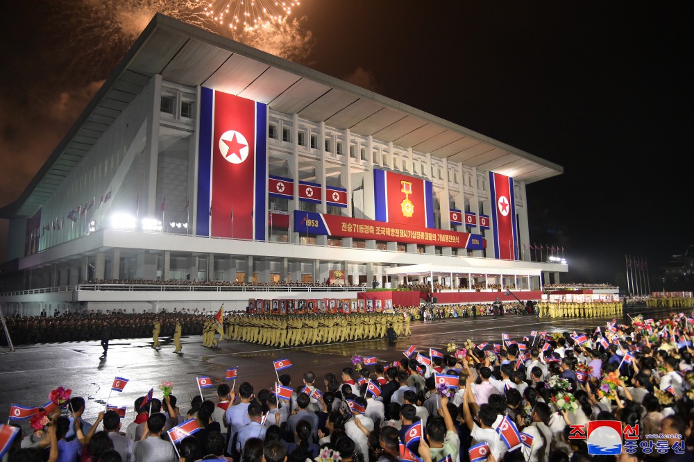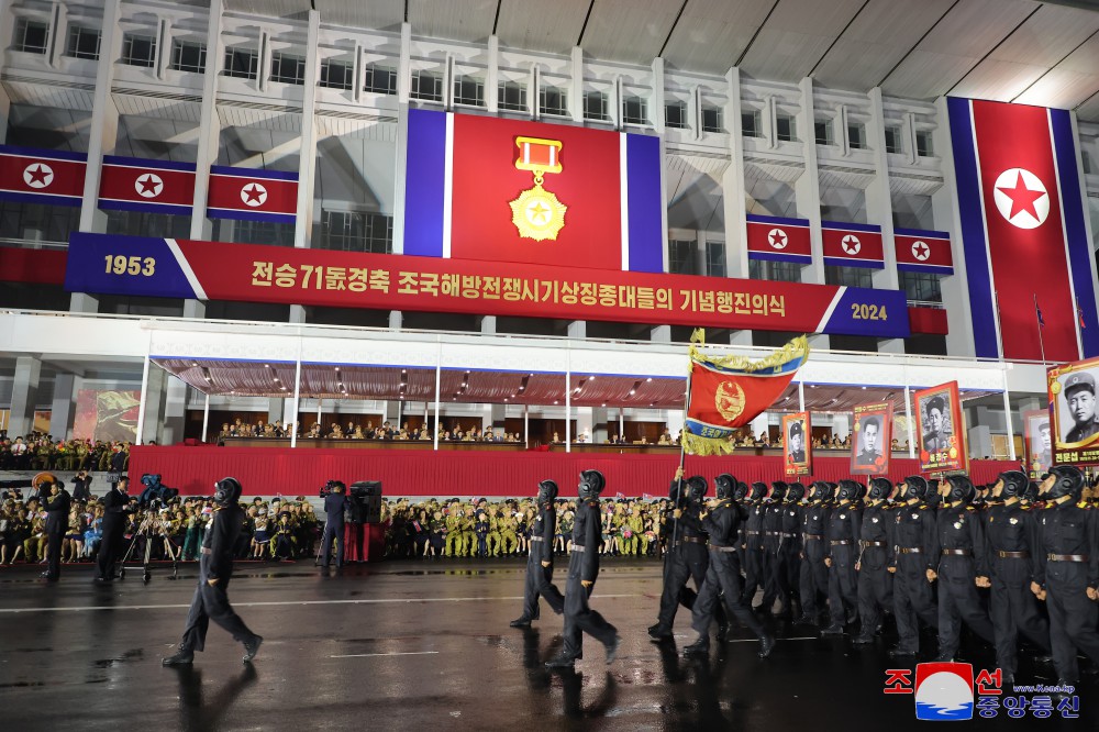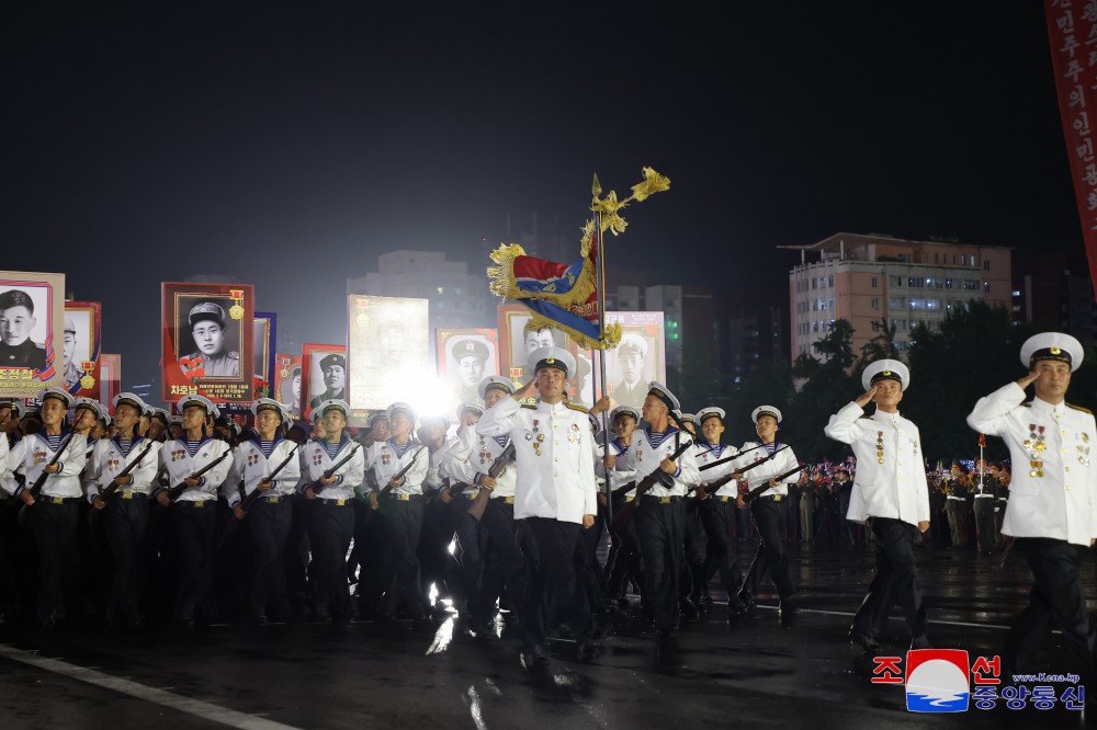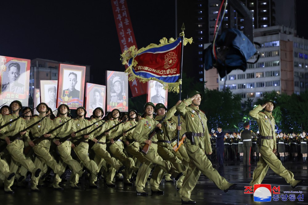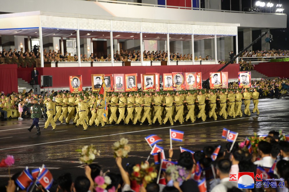 慶祝偉大戰勝71周年祖國解放戰爭時(shí)期象征方隊紀念行進(jìn)儀式7月27日晚在首都平壤舉行,彰顯我國人民跨世紀、代代迎接光榮勝利節日的特有的自豪和勝利傳統的繼承性。