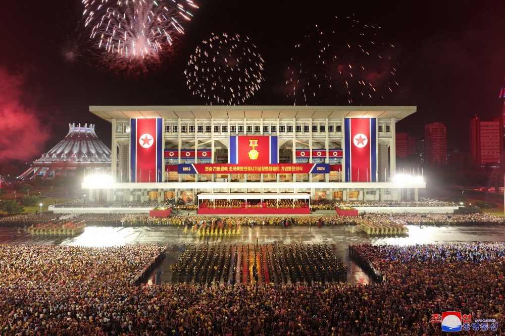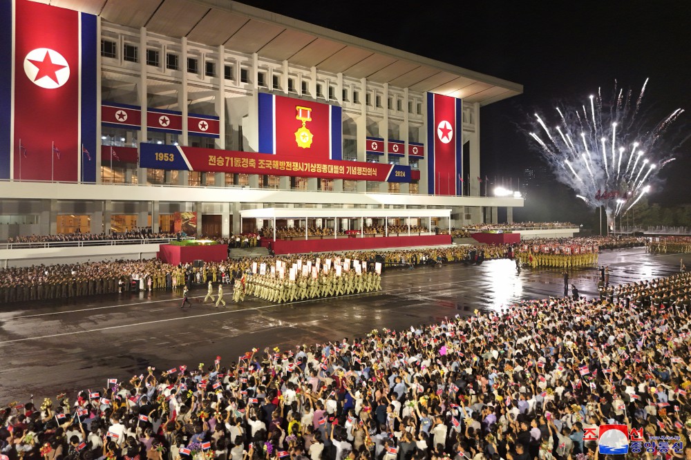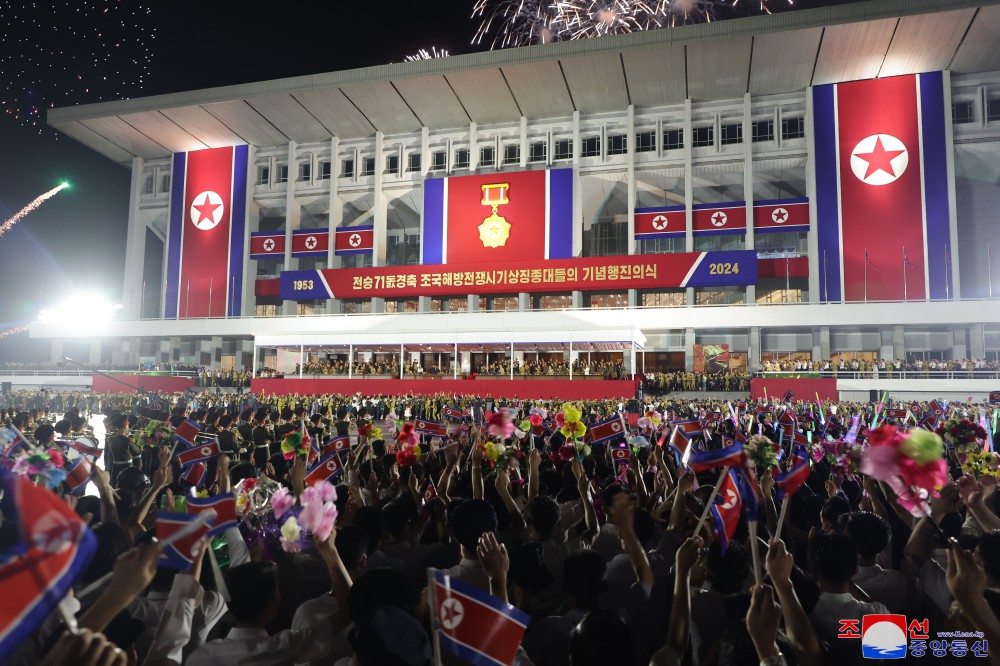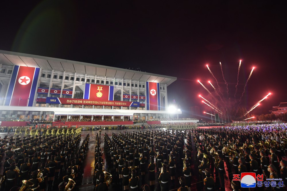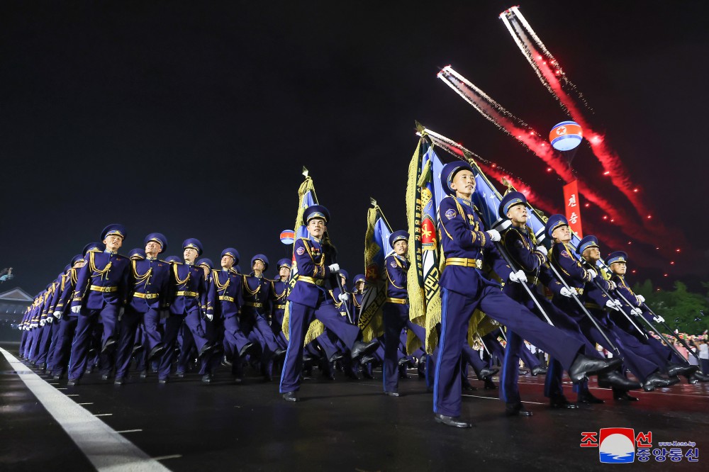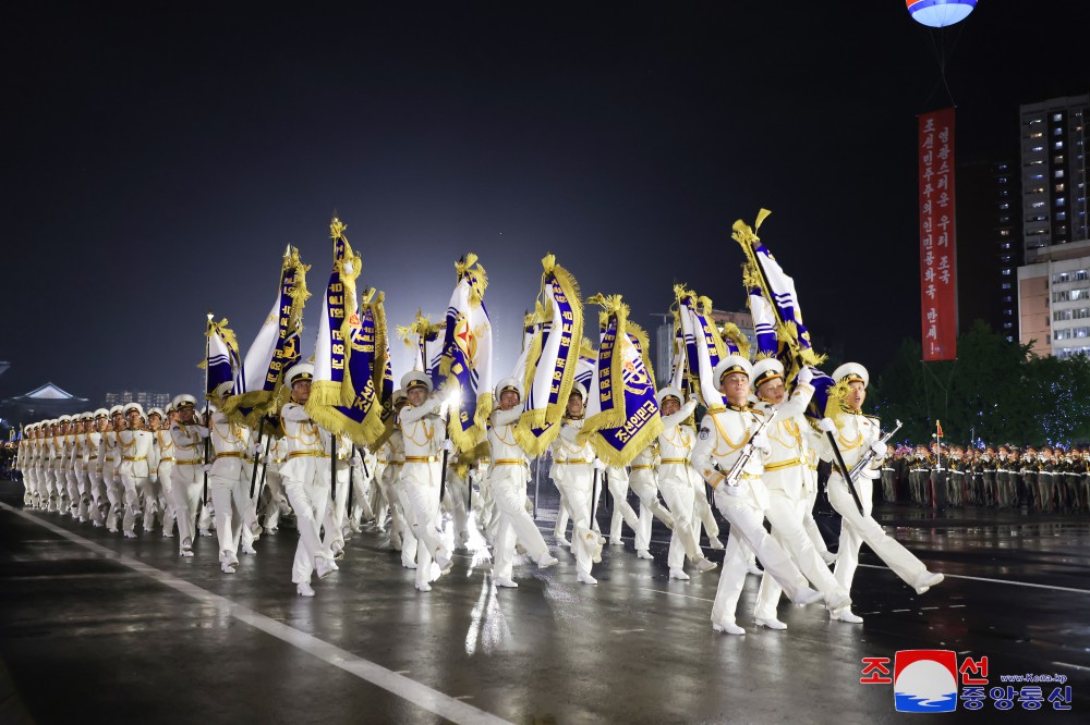 慶祝偉大戰勝71周年祖國解放戰爭時(shí)期象征方隊紀念行進(jìn)儀式7月27日晚在首都平壤舉行,彰顯我國人民跨世紀、代代迎接光榮勝利節日的特有的自豪和勝利傳統的繼承性。