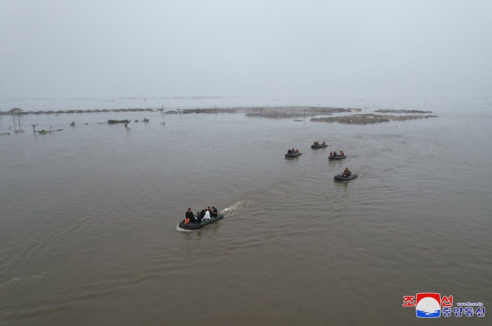 金正恩同志巡視浸水地區時(shí)就連地形地物都無(wú)法分辨的嚴重災情表示深切憂(yōu)慮,并披露了在最短期間內采取強有力的國家性救災重建措施,給災區人民提供更好的生活家園的決心。