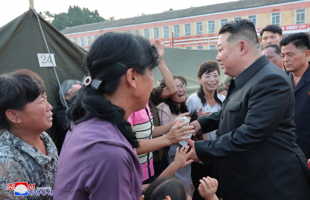 敬愛(ài)的金正恩同志發(fā)表講話(huà)撫慰災民。