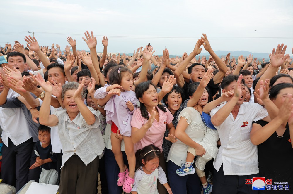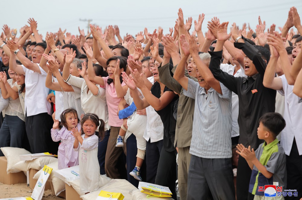 義州郡災民收到凝聚著(zhù)金正恩同志愛(ài)民情懷的支援物資,感到無(wú)比幸福,激情萬(wàn)分,潸然淚下,高呼“萬(wàn)歲”歡呼聲。