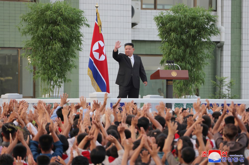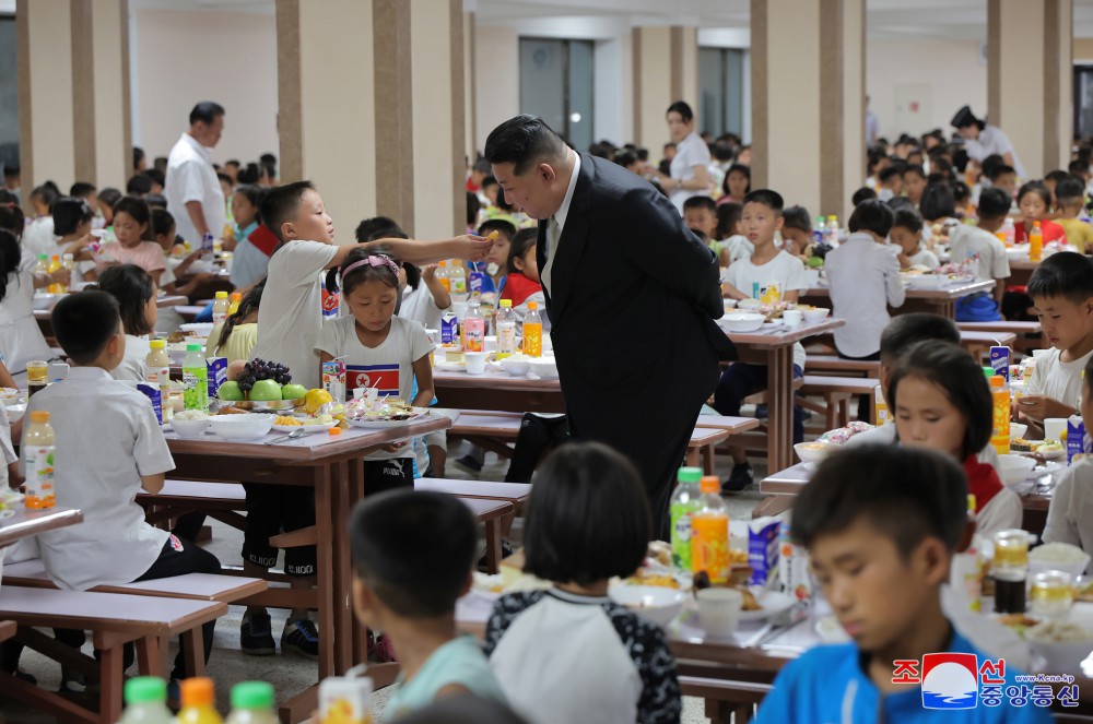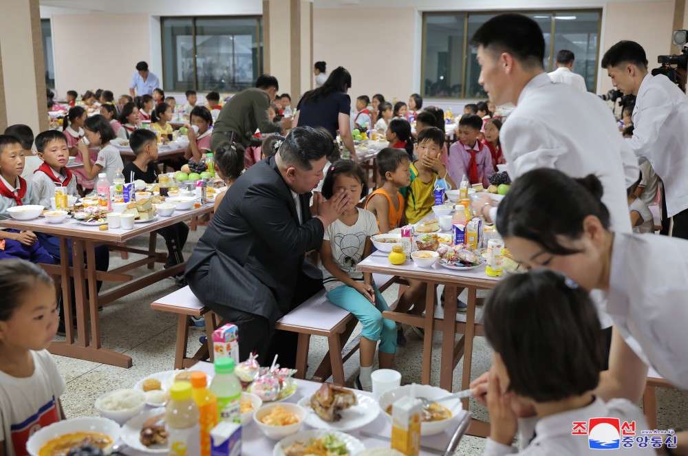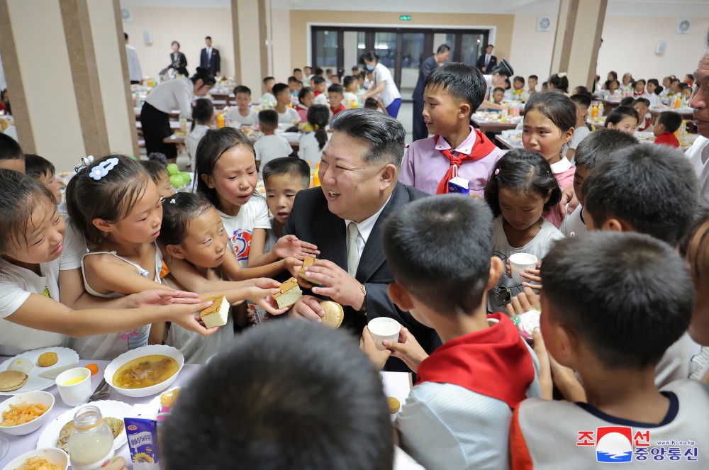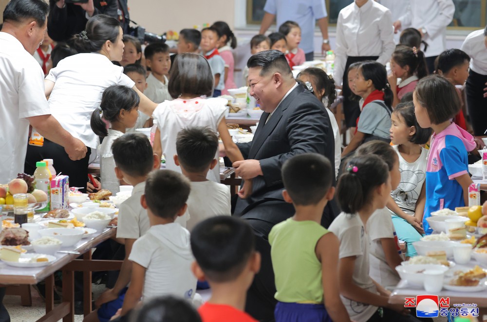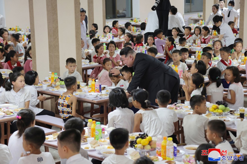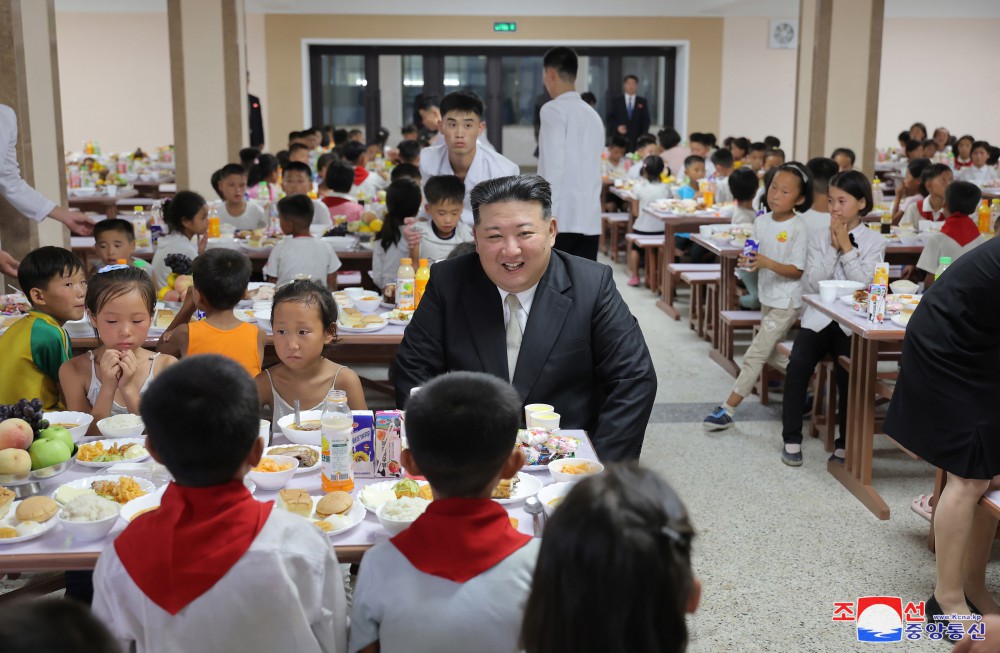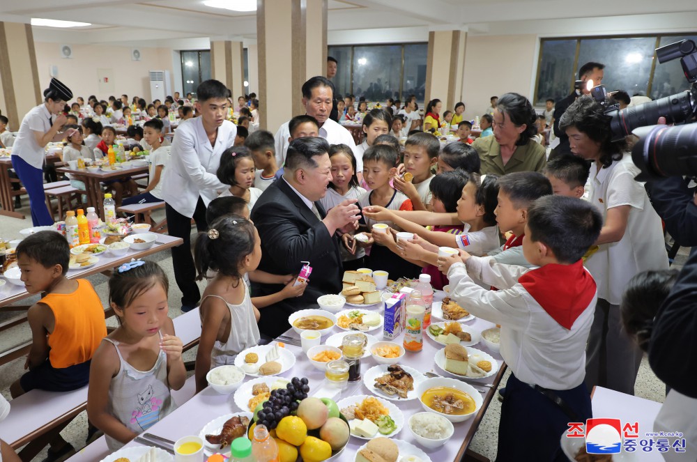 金正恩同志親切地抱住偎依在懷里的兒童們說(shuō),要吃好飯、睡好覺(jué),茁壯成長(cháng),成為讓家庭充滿(mǎn)歡笑、為國家多做好事的幸運兒。
