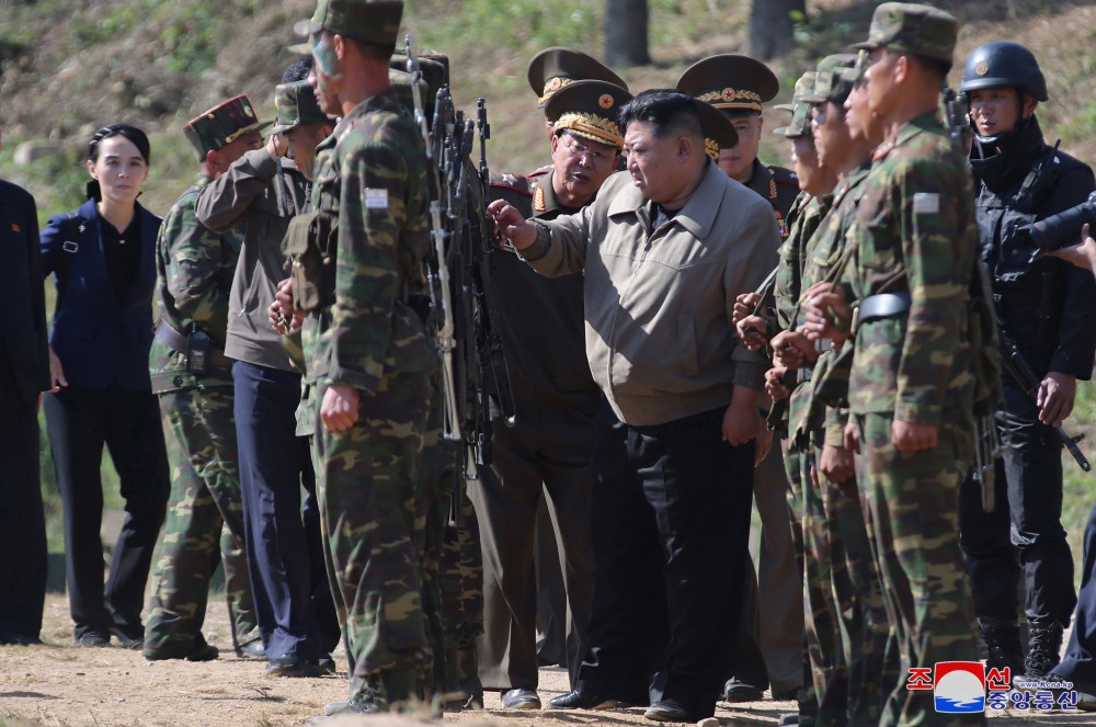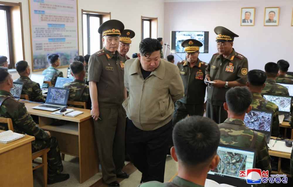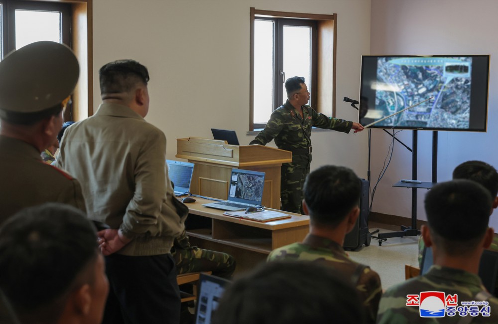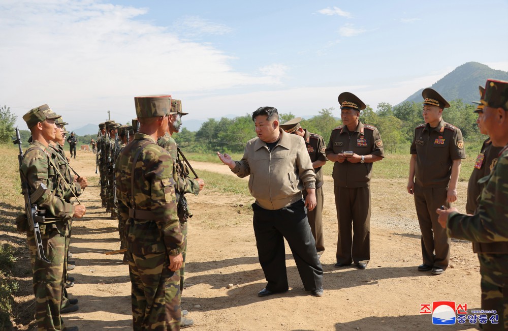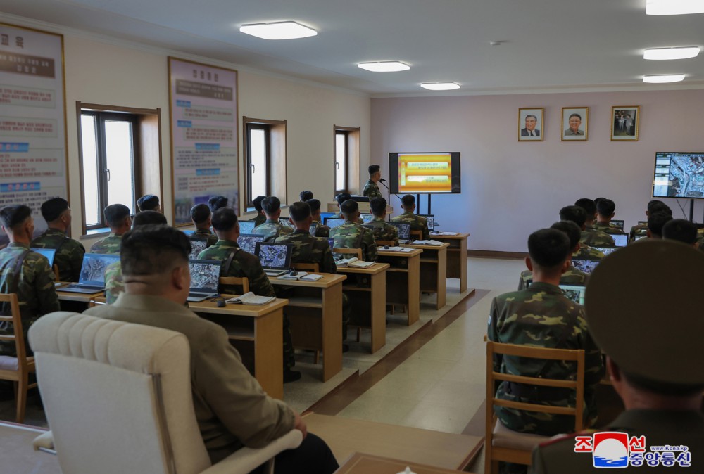 敬愛(ài)的金正恩同志登上觀(guān)察所,觀(guān)摩了戰斗員按照訓練大綱進(jìn)行的目標偵察及襲擊戰訓練。