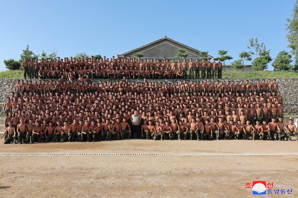 金正恩同志說(shuō),看到我們戰斗員都成為子彈那樣鐵錚錚的勇猛戰斗員,心里就踏實(shí),引以為傲。金正恩同志勉勵個(gè)個(gè)都是戰無(wú)不勝的我軍可靠的近衛兵、熱血猛將的戰斗員,還和他們合影留念。