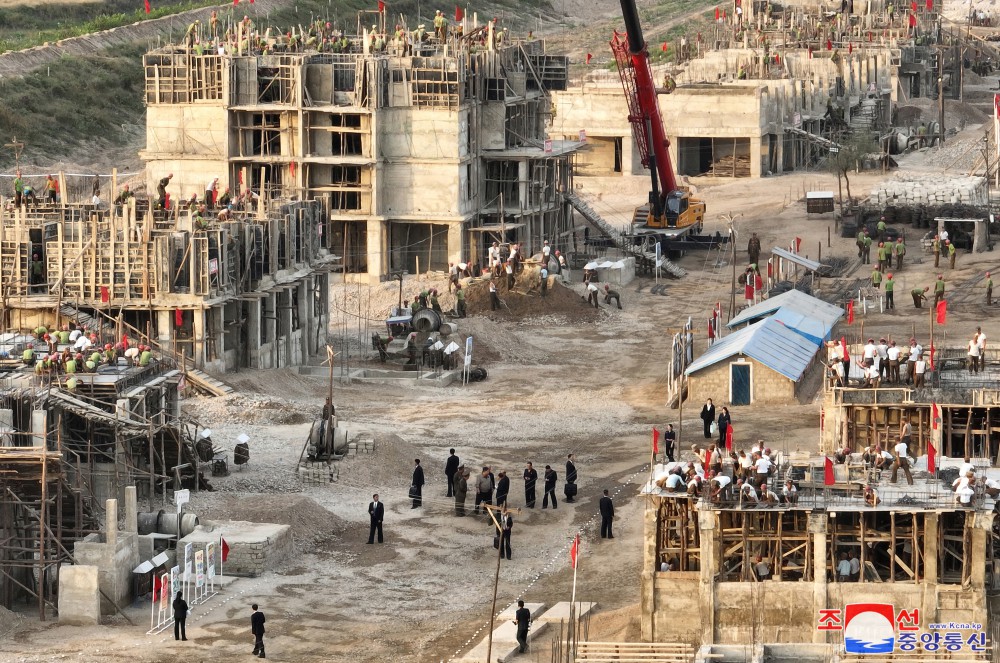 金正恩同志與陪同干部一起視察了住宅建設工地。