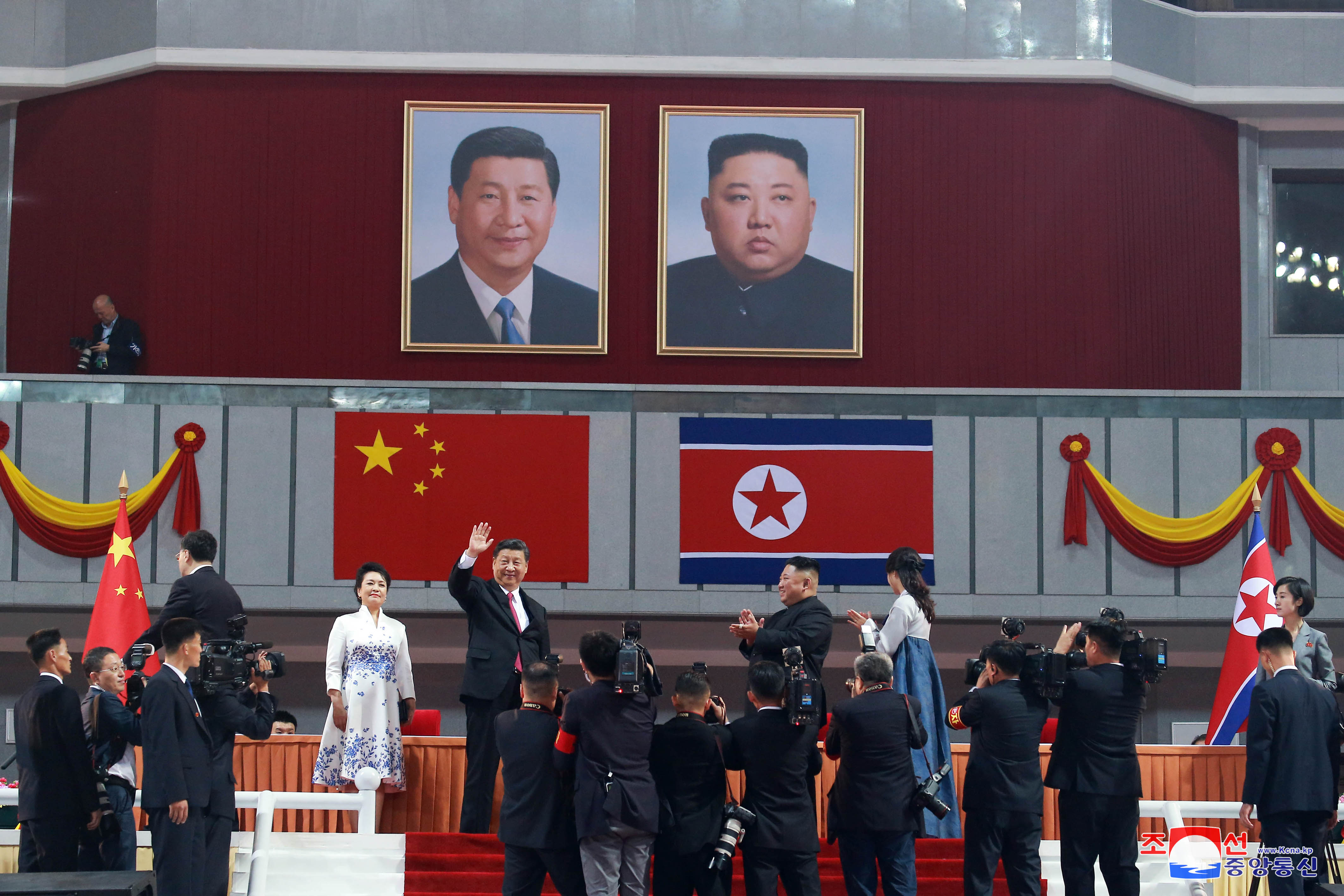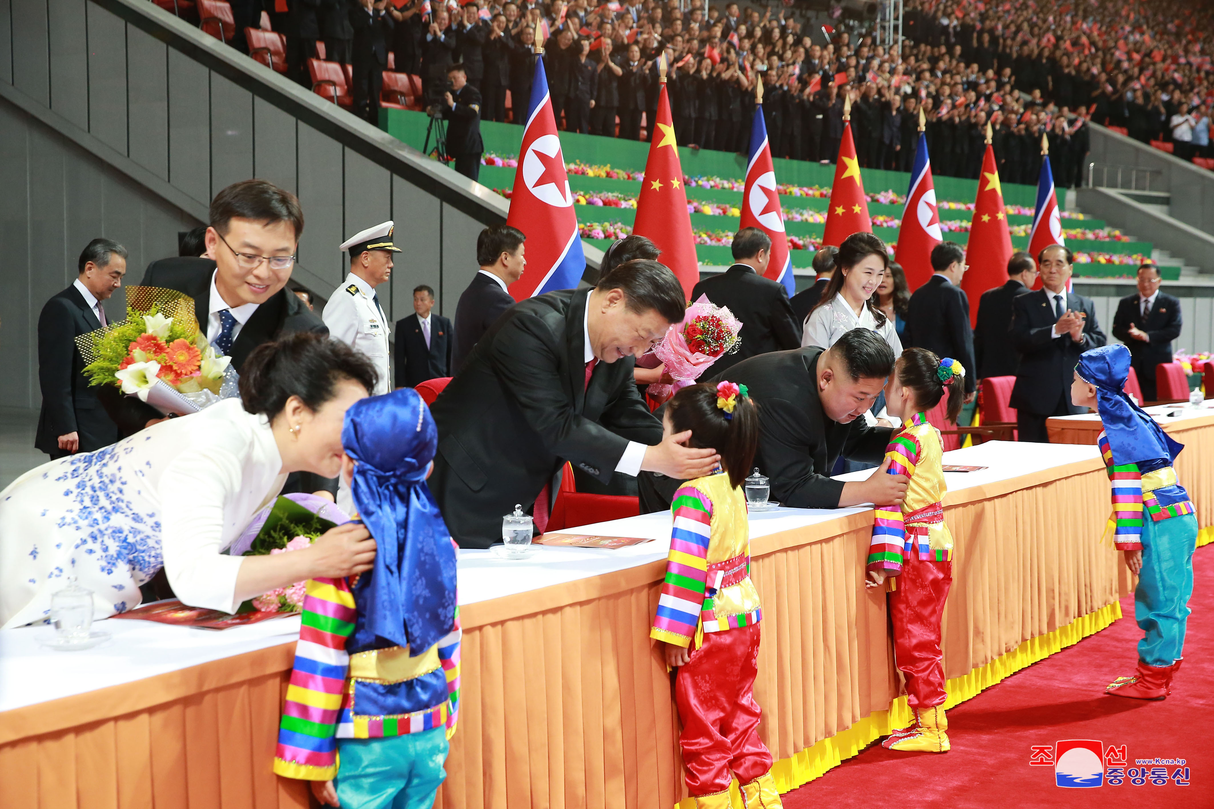 當地時(shí)間6月20日晚,中共中央總書(shū)記、國家主席習近平和夫人彭麗媛在朝鮮勞動(dòng)黨委員長(cháng)、國務(wù)委員會(huì )委員長(cháng)金正恩和夫人李雪主陪同下,在平壤“五一”體育場(chǎng)同朝鮮各界群眾一道觀(guān)看大型團體操和藝術(shù)演出。