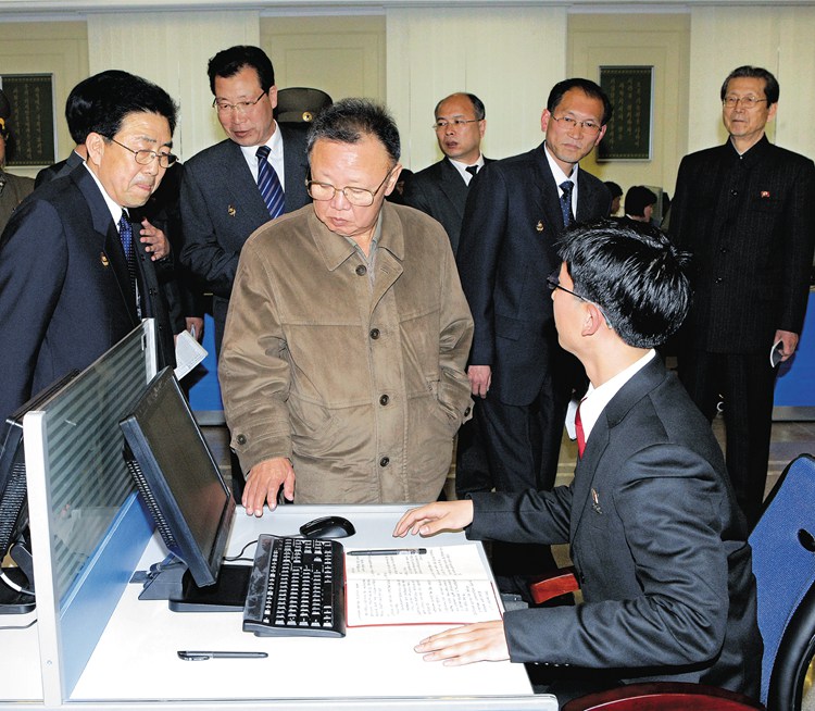 金正日同志視察新建的金日成綜合大學(xué)電子圖書(shū)館 2010 年 4 月
