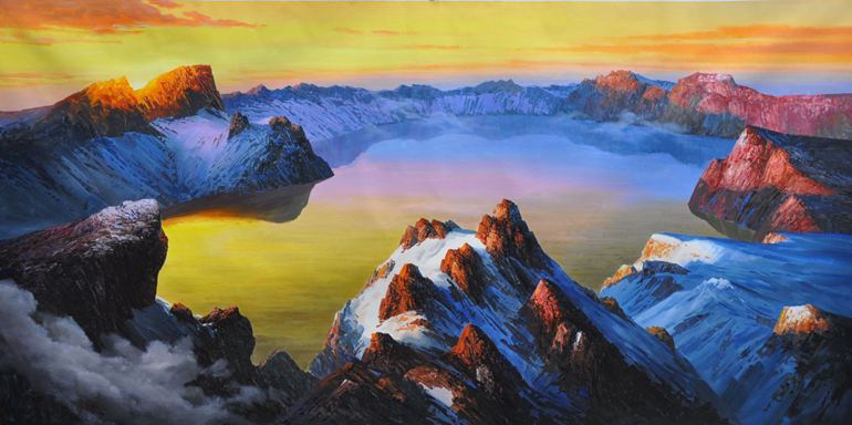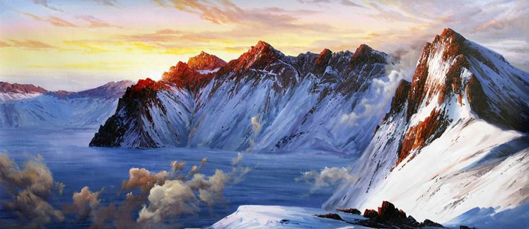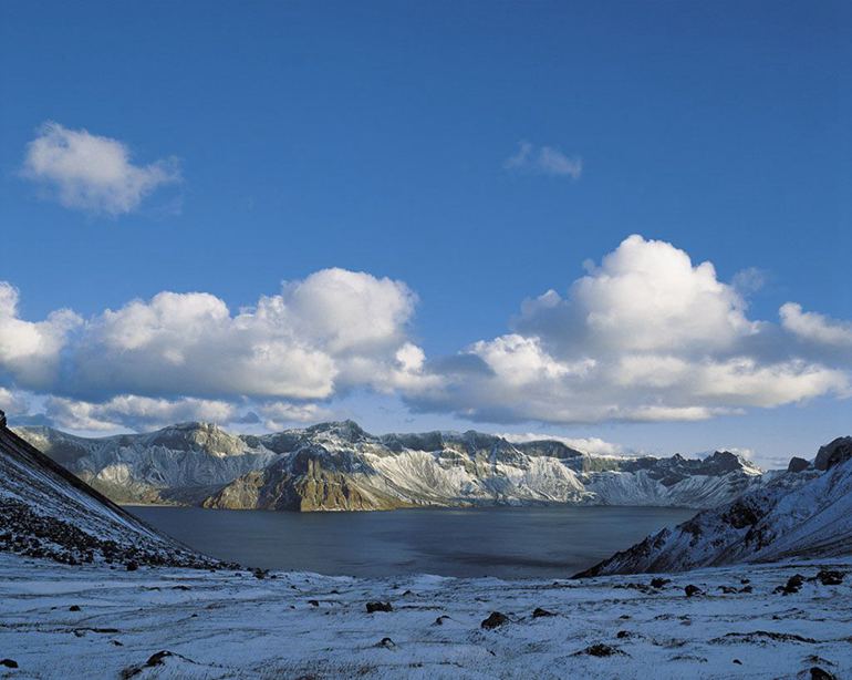 白頭山是位于中國東北和朝鮮邊境的界山。是“朝鮮八景”之一。白頭山從100萬(wàn)年前到18世紀,它是活火山。白頭山面積9.16平方公里,方圓14.4公里,最長(cháng)4.64公里,最深處384米。白頭山高2750米。以白頭山為中心,周?chē)娜蹘r臺地面積為5350平方公里。周?chē)€有將軍峰(第一高峰)、向導峰、團結峰等許多山峰環(huán)繞。
