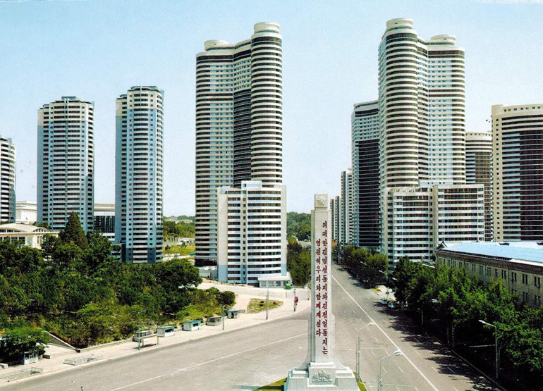 平壤倉田街是朝鮮為紀念朝鮮開(kāi)國領(lǐng)袖金日成誕辰一百周年而修建的現代化商住區。