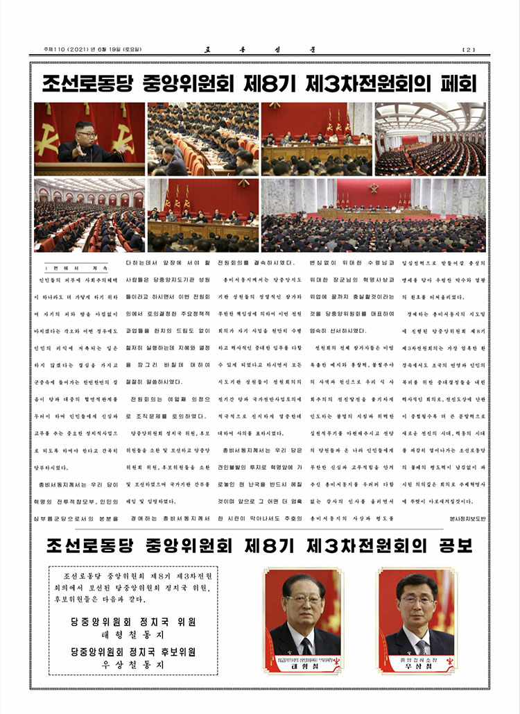 朝鮮勞動(dòng)黨八屆三中全會(huì )閉幕