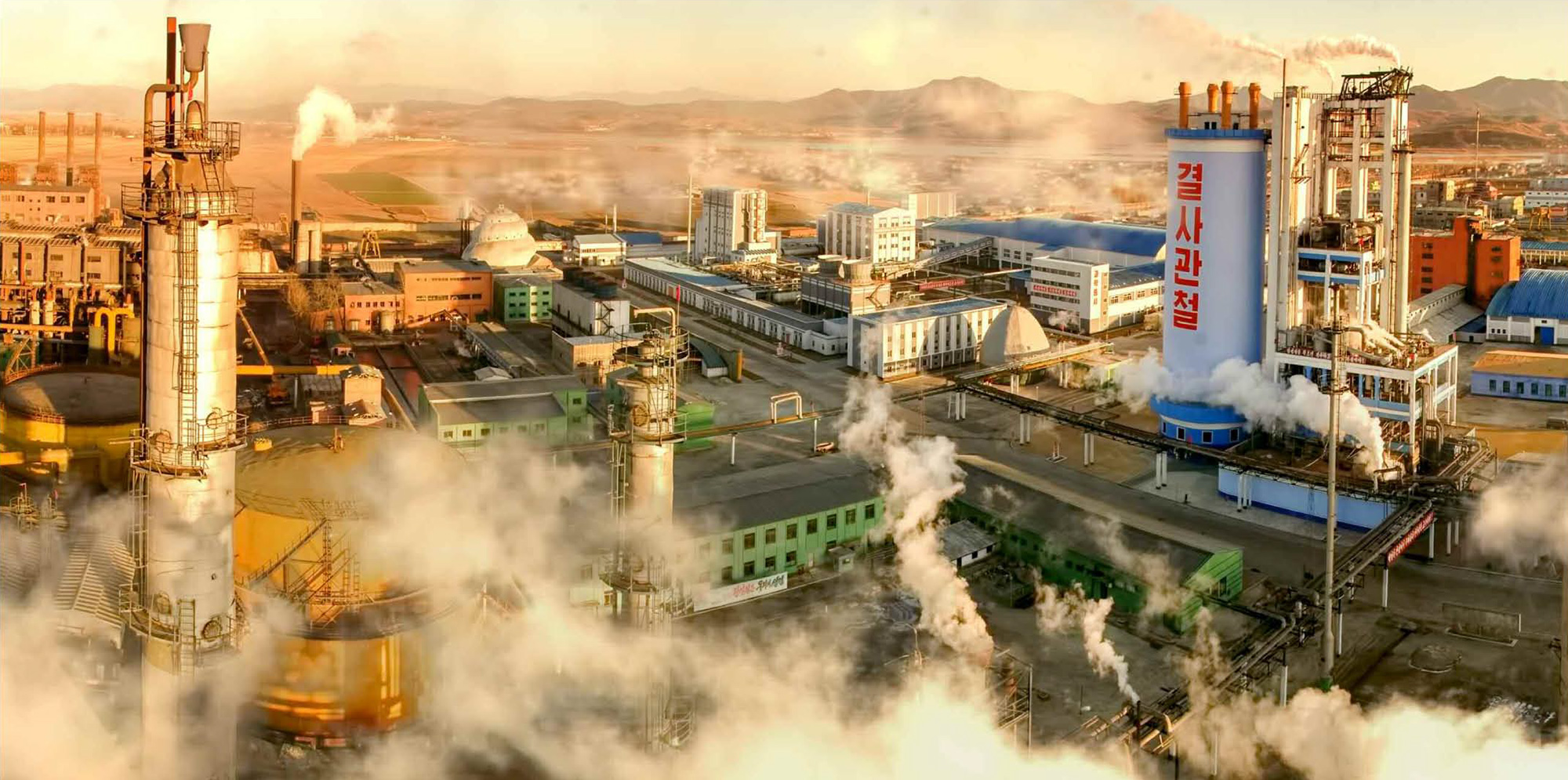 朝鮮到處響起經(jīng)濟部門(mén)增產(chǎn)的轟隆聲。(熱火朝天的南興青年化工聯(lián)合企業(yè))