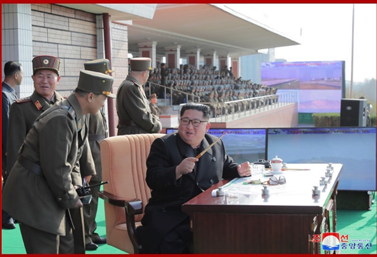 每當飛行指揮人員和戰斗飛行員發(fā)揮勇猛而靈活自如的操縱技術(shù),展現出色的飛行技術(shù)的時(shí)候,金正恩親切揮手致意鼓勵了他們。