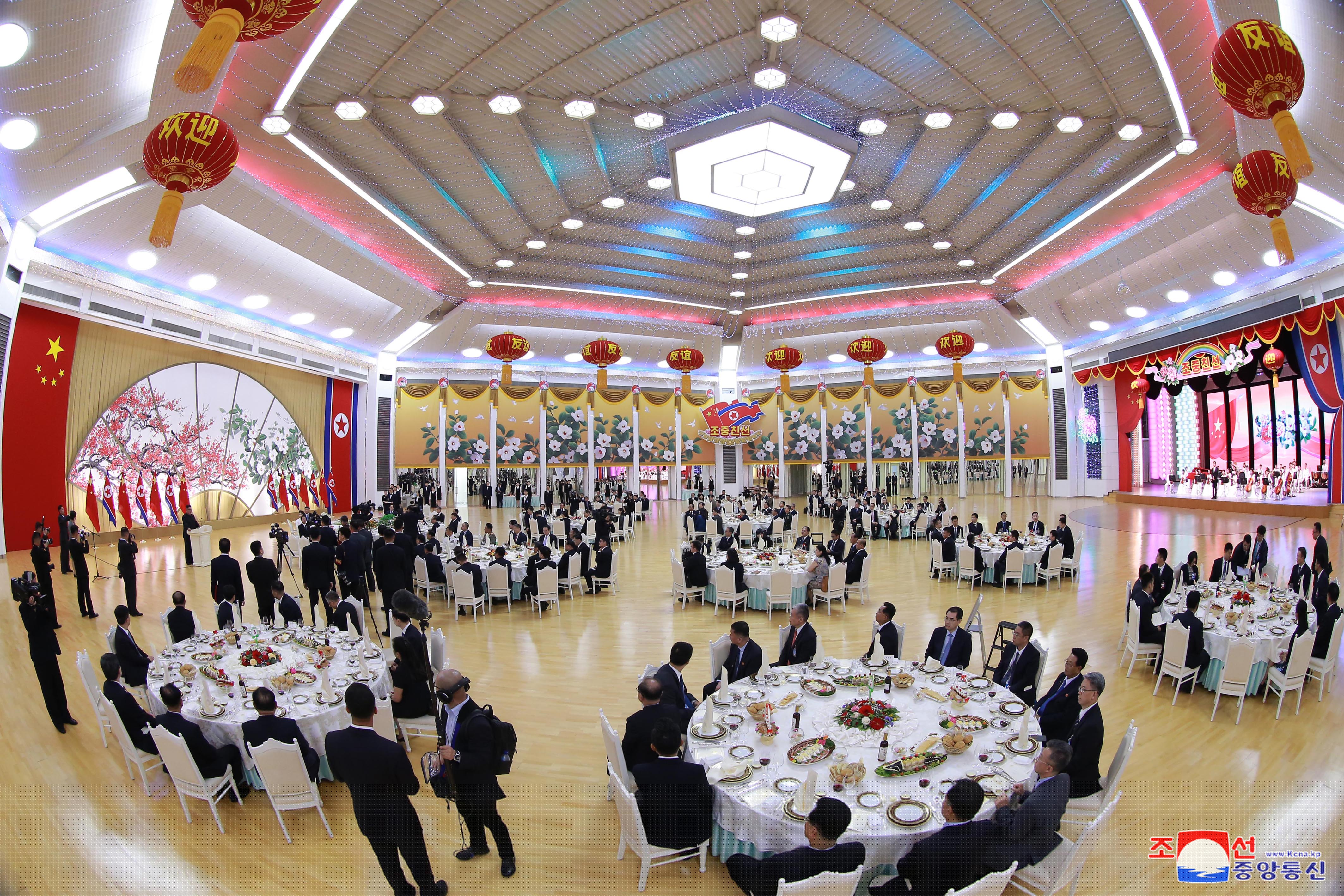 本報平壤6月20日電 (記者杜尚澤、莽九晨)6月20日,中共中央總書(shū)記、國家主席習近平出席了朝鮮勞動(dòng)黨委員長(cháng)、國務(wù)委員會(huì )委員長(cháng)金正恩在平壤木蘭館舉行的歡迎宴會(huì )。