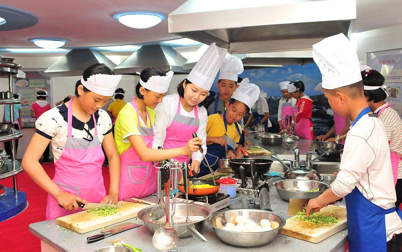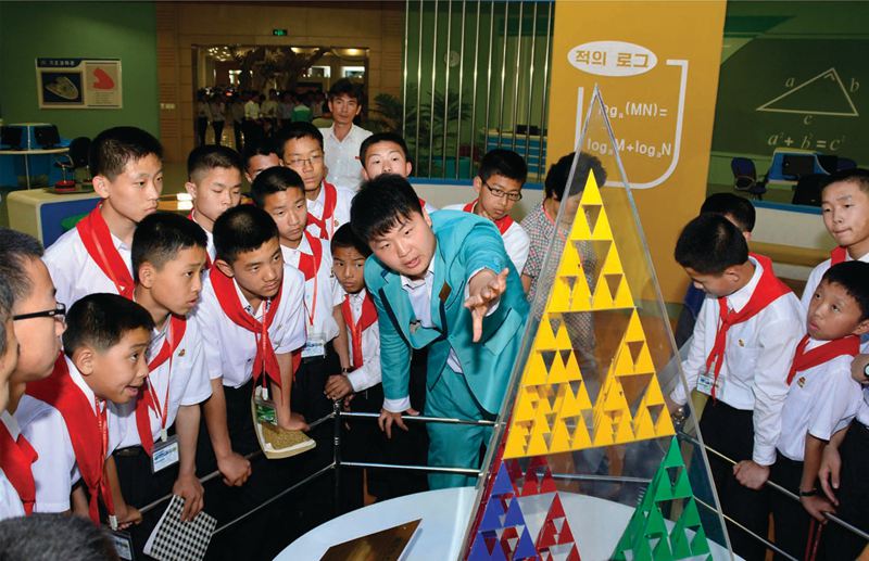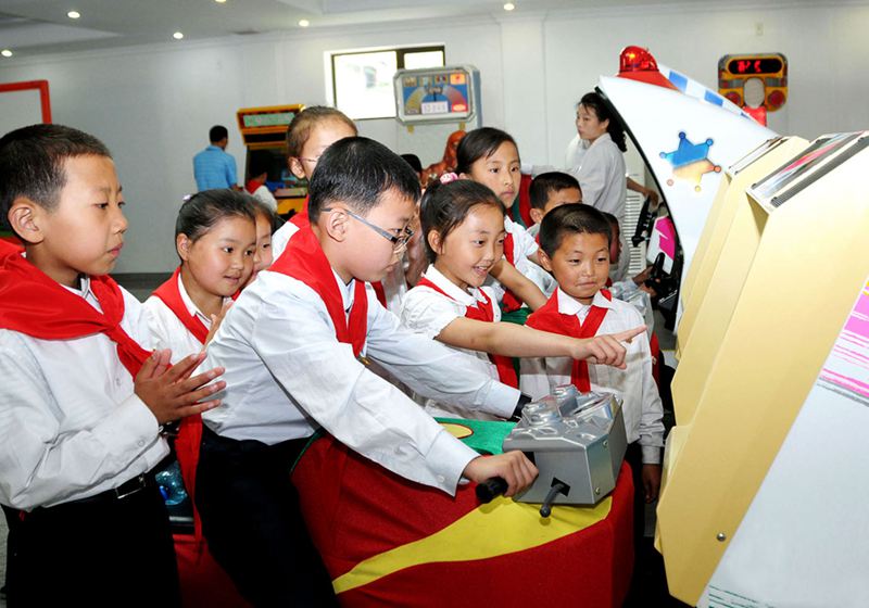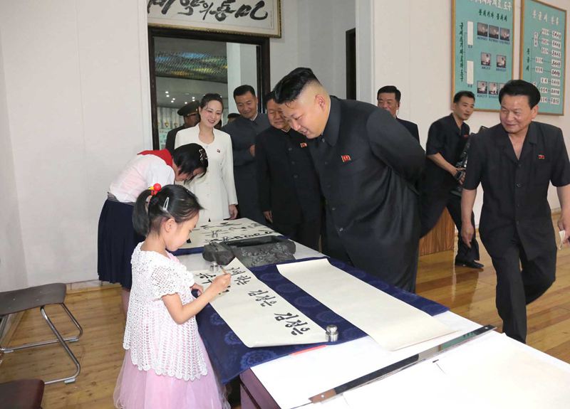 敬愛(ài)的最高領(lǐng)導者金正恩同志參觀(guān)萬(wàn)景臺學(xué)生少年宮。2014年5月