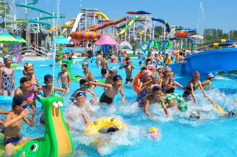 各國兒童在松濤園國際少年團夏令營(yíng)洗海水浴。