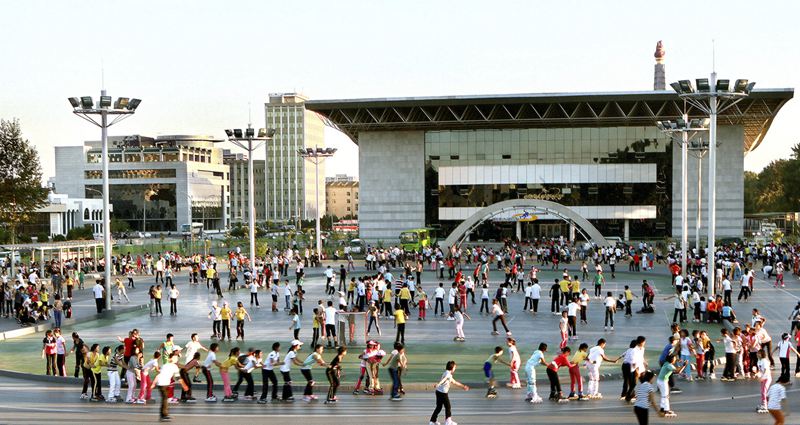 敬愛(ài)的最高領(lǐng)導者金正恩同志視察人民露天滑冰場(chǎng),同兒童合影留念。2012年11月