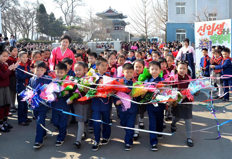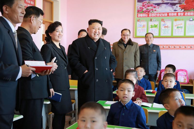 敬愛(ài)的最高領(lǐng)導者金正恩同志視察平壤孤兒小學(xué)。2017年2月
