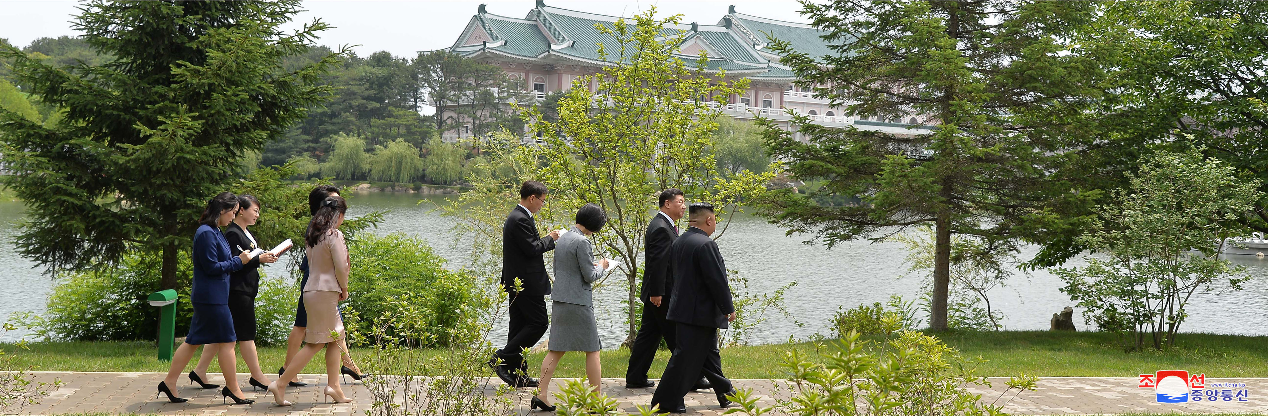 會(huì )見(jiàn)前,習近平夫婦和金正恩夫婦在庭院內散步交談。在風(fēng)景秀麗的錦繡山迎賓館湖邊,習近平和金正恩在輕松友好的氣氛中閑庭信步,就加強中朝傳統友誼等共同關(guān)心的話(huà)題親切交換意見(jiàn)。