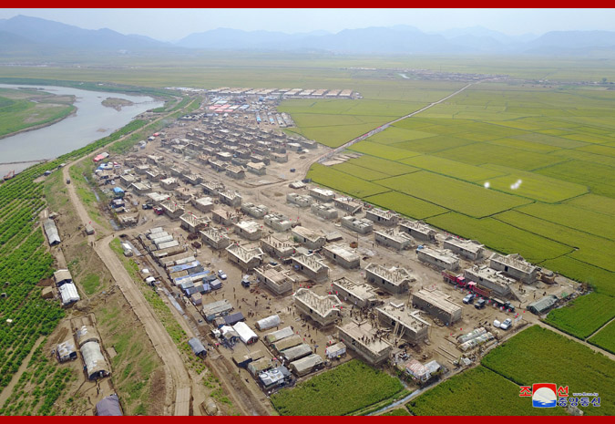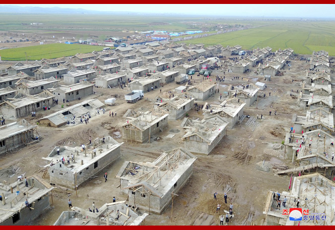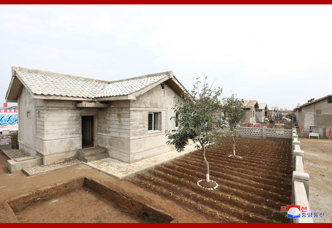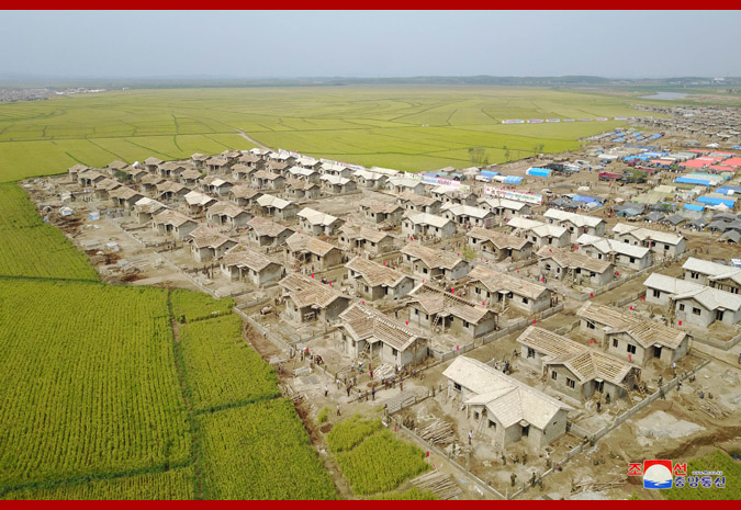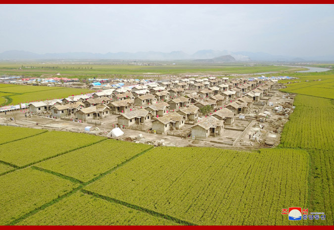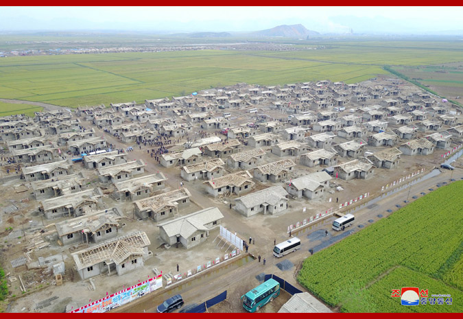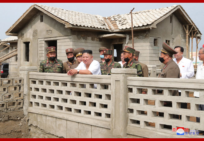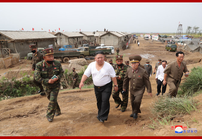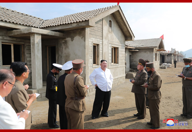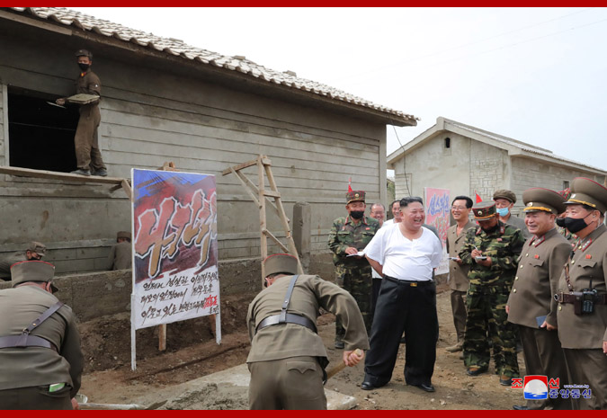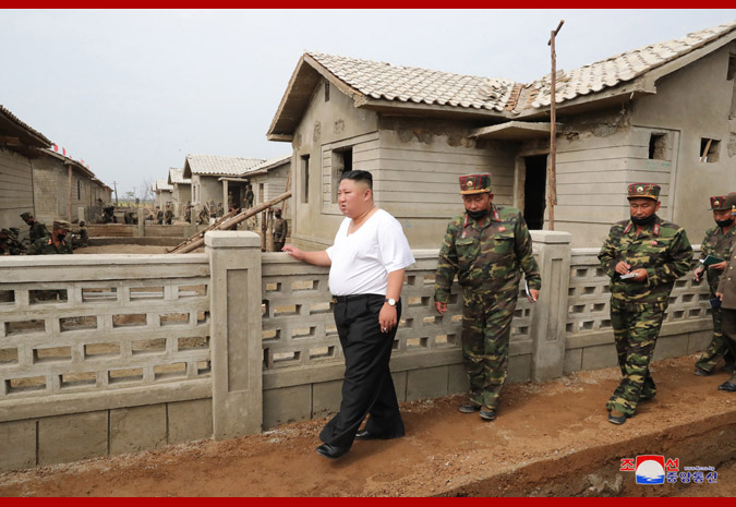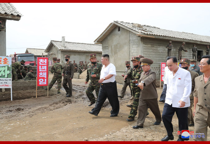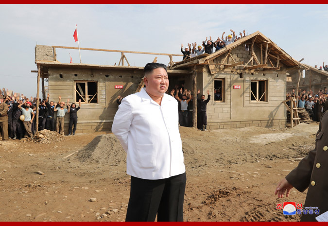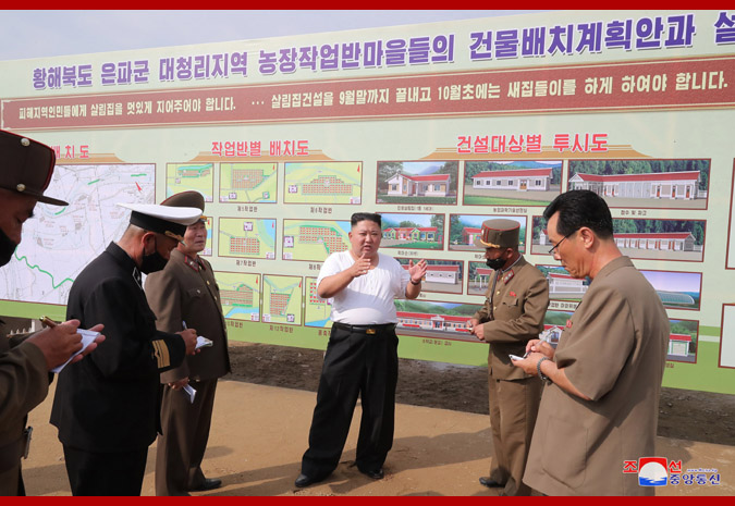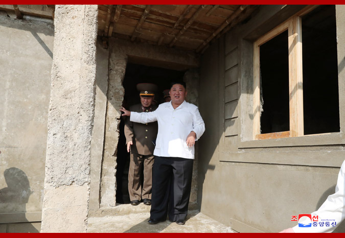 金正恩同志視察黃海北道銀波郡大青里一帶的災后恢復重建工地