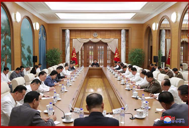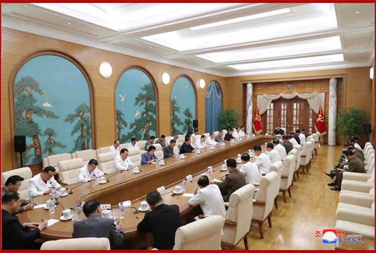 受黨中央政治局委托,朝鮮勞動(dòng)黨委員長(cháng)金正恩主持會(huì )議。