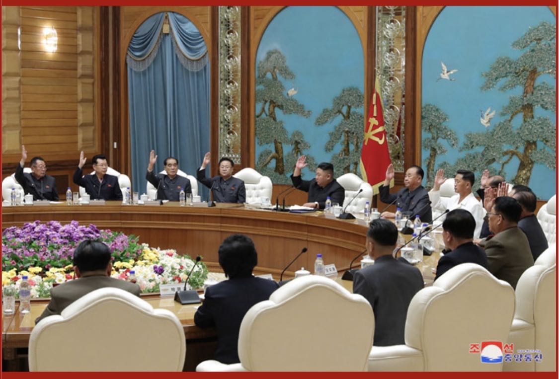 政治局會(huì )議的第二個(gè)議題通過(guò)了在朝鮮勞動(dòng)黨成立75周年之際晉升黨和軍隊主要干部軍銜的決議。