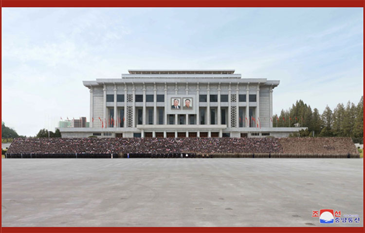 朝中社平壤10月12日電 朝鮮勞動(dòng)黨委員長(cháng)、朝鮮民主主義人民共和國國務(wù)委員會(huì )委員長(cháng)、朝鮮民主主義人民共和國武裝力量最高司令官、我們黨、國家和武裝力量最高領(lǐng)導者金正恩同志11日同朝鮮勞動(dòng)黨成立75周年慶?;顒?dòng)代表一起合影留念。