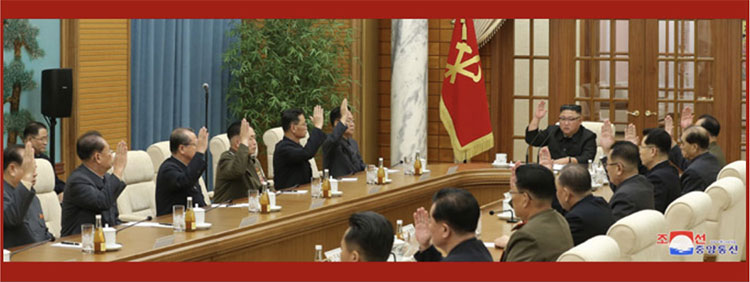 受黨中央政治局委托,敬愛(ài)的最高領(lǐng)導者金正恩同志主持會(huì )議。