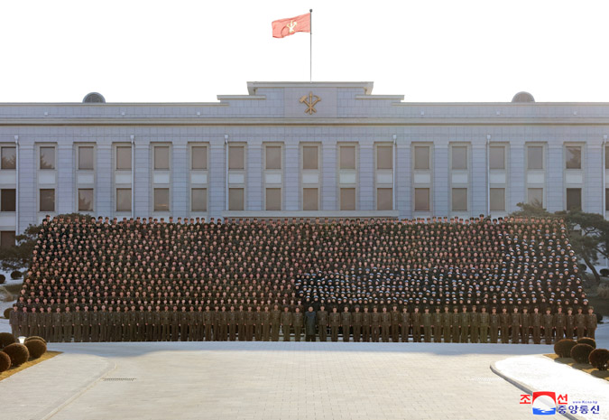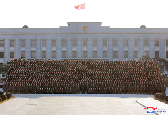金正恩同志同為圓滿(mǎn)保障黨的八大做出貢獻的護衛、安全、保衛部門(mén)官兵合影留念