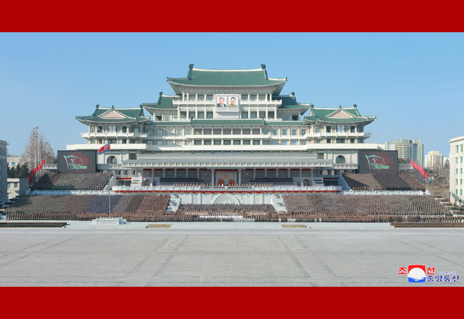 金正恩同志抵達攝影場(chǎng)時(shí),全體參加人員爆發(fā)出如雷般的“萬(wàn)歲!”歡呼聲,向以莊嚴威顯的革命武裝力量閱兵式隆重紀念黨代表大會(huì ),啟動(dòng)爭取我們朝鮮式社會(huì )主義新勝利的歷史性進(jìn)軍,明確革命性黨軍的歷史使命的最高司令官同志致以最大的光榮。