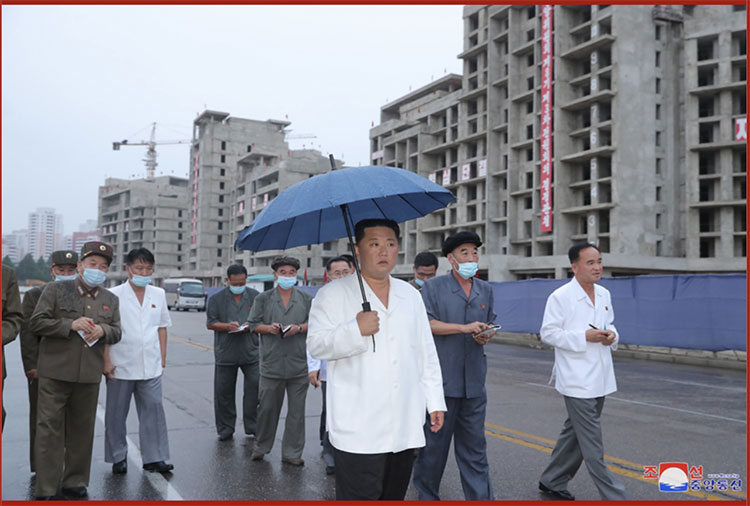 朝中社平壤8月21日電 朝鮮勞動(dòng)黨總書(shū)記、朝鮮民主主義人民共和國國務(wù)委員長(cháng)金正恩同志對普通江岸邊樓梯式住宅區建設工程進(jìn)行了實(shí)地考察。