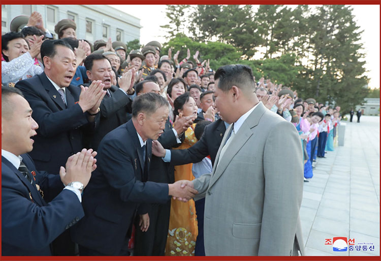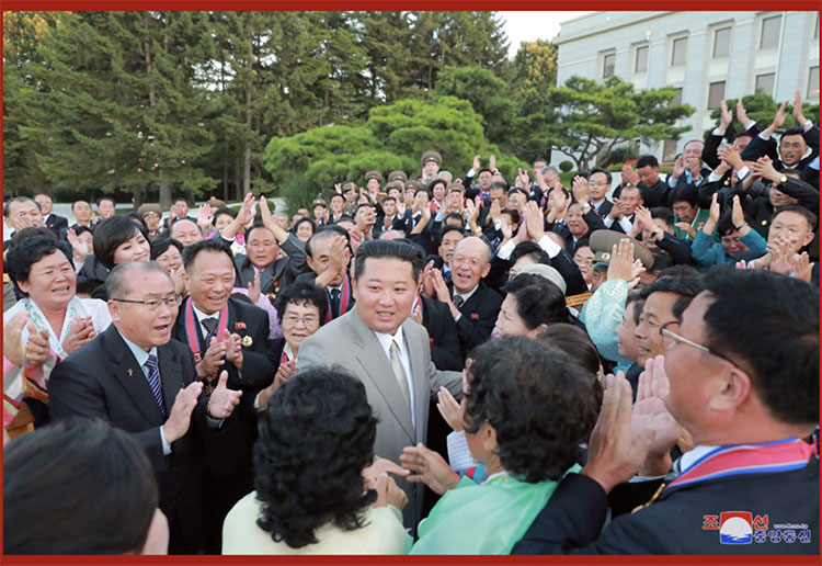 朝中社平壤9月9日電 朝鮮勞動(dòng)黨總書(shū)記、朝鮮民主主義人民共和國國務(wù)委員長(cháng)金正恩同志8日在黨中央委員會(huì )本部大樓會(huì )見(jiàn)參加共和國成立73周年慶?;顒?dòng)的勞模和有功者,并親切地祝賀他們。