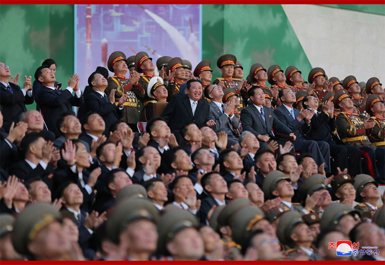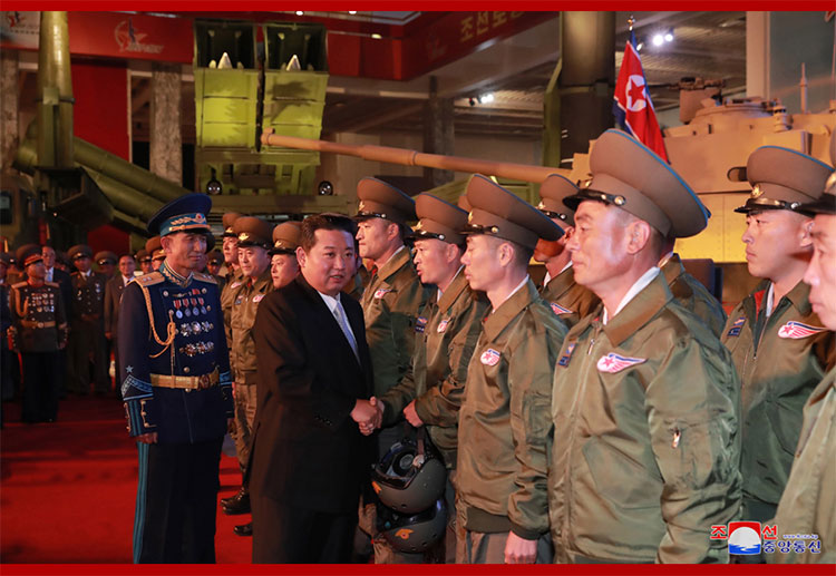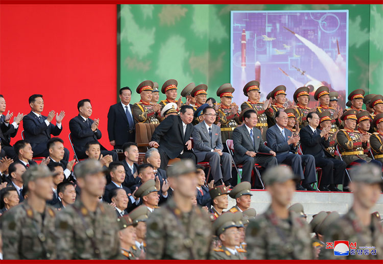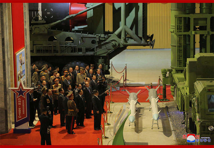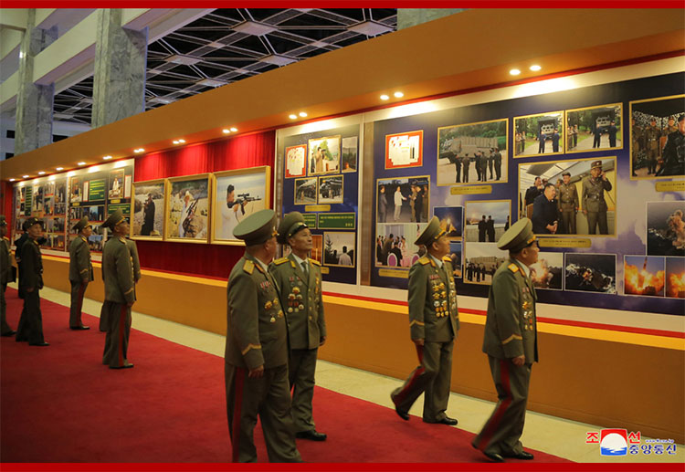 總書(shū)記同志充滿(mǎn)自豪地宣布,今天的隆重展覽會(huì )是集中直觀(guān)地表現我們黨始終不渝地堅持戰無(wú)不勝的自衛路線(xiàn),開(kāi)創(chuàng )加強國家防衛力量新轉機的遠大抱負、領(lǐng)導力和實(shí)踐執行力,大大顯示我們國家達成的國防科學(xué)、軍需工業(yè)的驚人發(fā)展面貌及其輝煌前景的、不亞于大規模閱兵式的一大國力示威。
